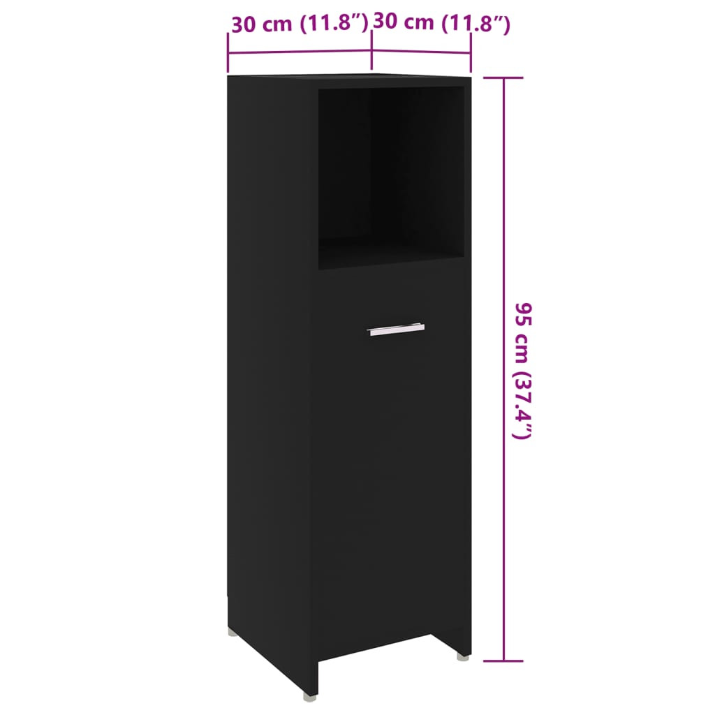 fekete szerelt fa fürdőszobaszekrény 30 x 30 x 95 cm