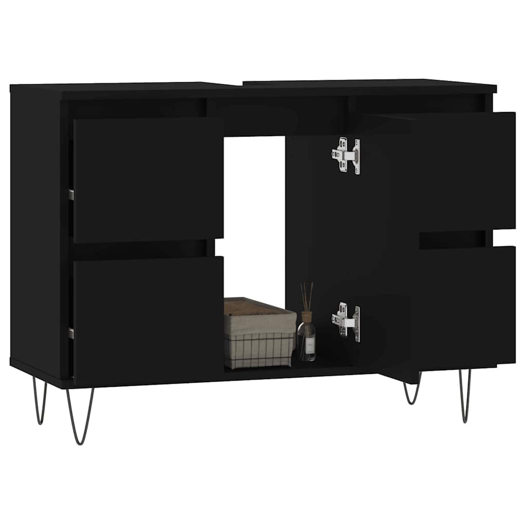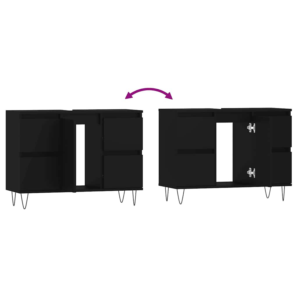 fekete szerelt fa mosdószekrény 80 x 33 x 60 cm