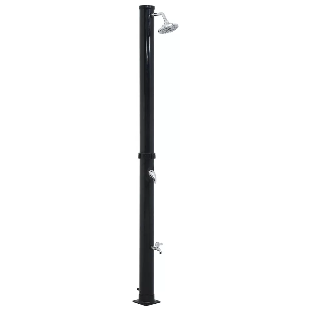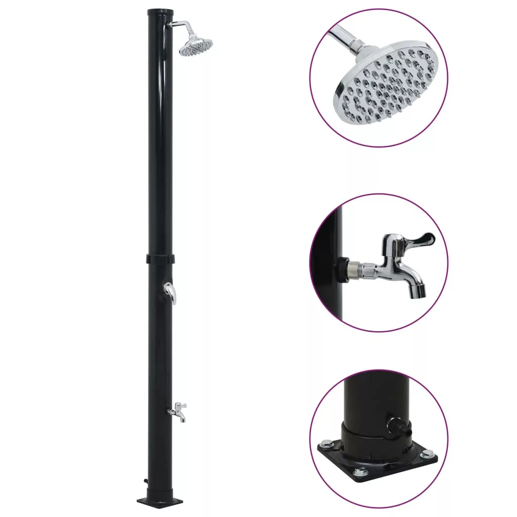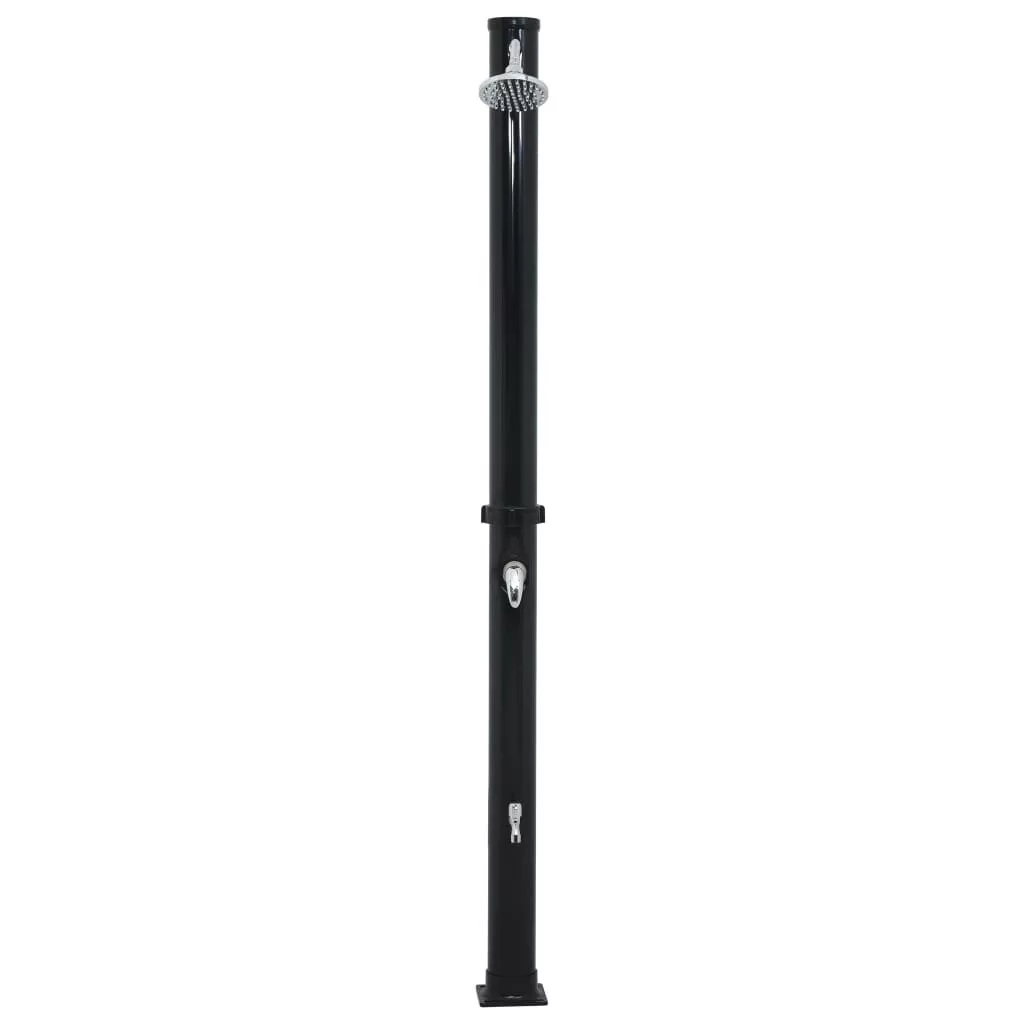 Élvezze a melegvizes tusolást a medence mellett vagy a kertben ezzel a kényelmes szolárzuhannyal! 20 literes víztartályában napenergia melegíti fel a vizet. Ez a napkollektoros zuhanyzó energiatakarékos és környezetbarát: használatához nincs szükség fűtőberendezésre. A zuhanyzó PVC-ből készült, így strapabíró és nem tartalmaz semmilyen káros vegyi anyagot. A fekete zuhanytest napos időben elősegíti a napenergia gyors elnyelését. A víz max. 60°C-ig melegszik fel. A kültéri zuhanyzó kézre eső hőmérséklet-szabályzóval lett ellátva, így a hideg-meleg vizet könnyen szabályozhatja. Ezenkívül bármely szabványos kerti tömlőhöz könnyen csatlakoztatható, külön vízvezeték-szerelés nélkül. A terméket könnyű összeszerelni. Figyelem: A szállítás a rögzítőcsavarokat is tartalmazza.