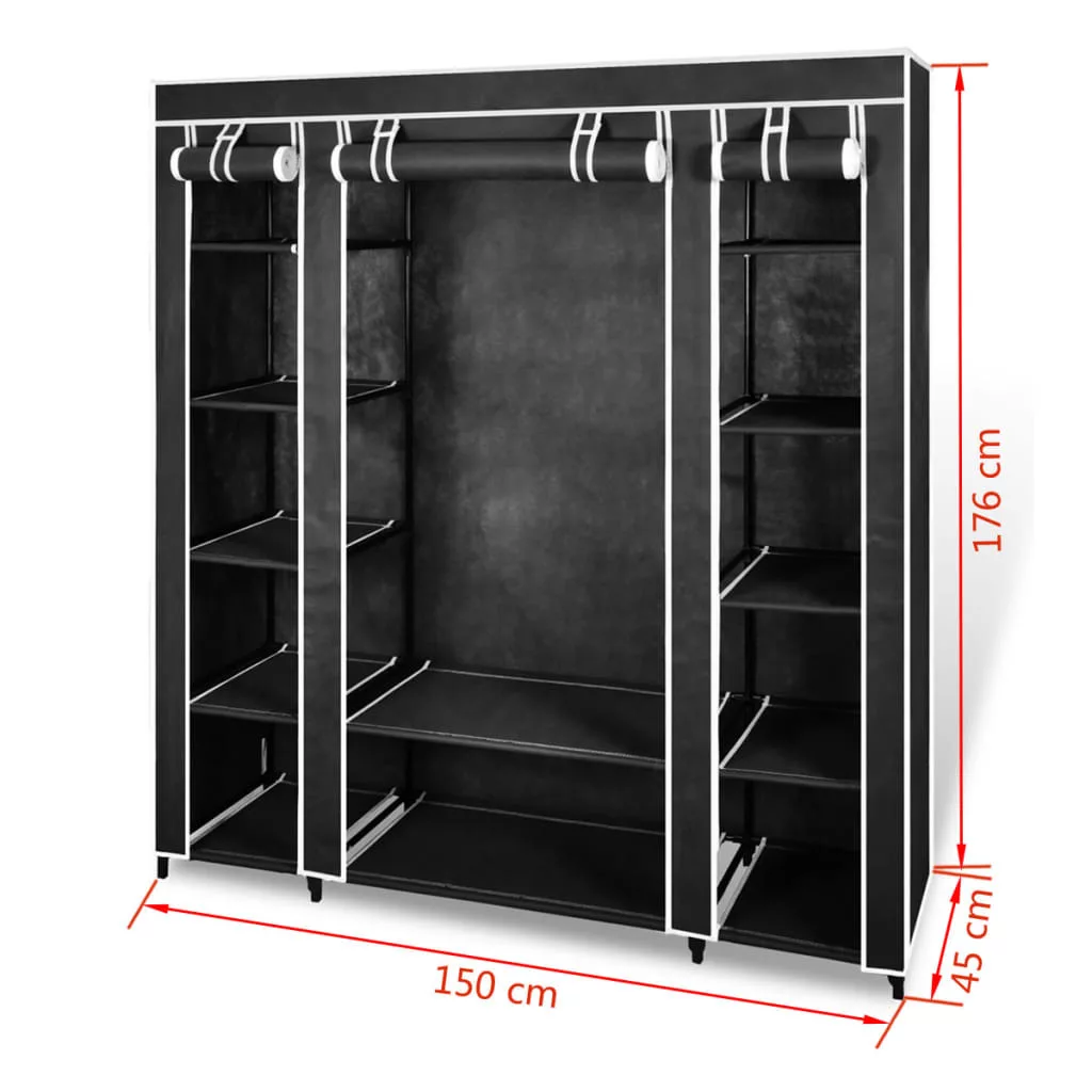 fekete szövet ruhásszekrény tárolórekeszekkel 45x150x176 cm