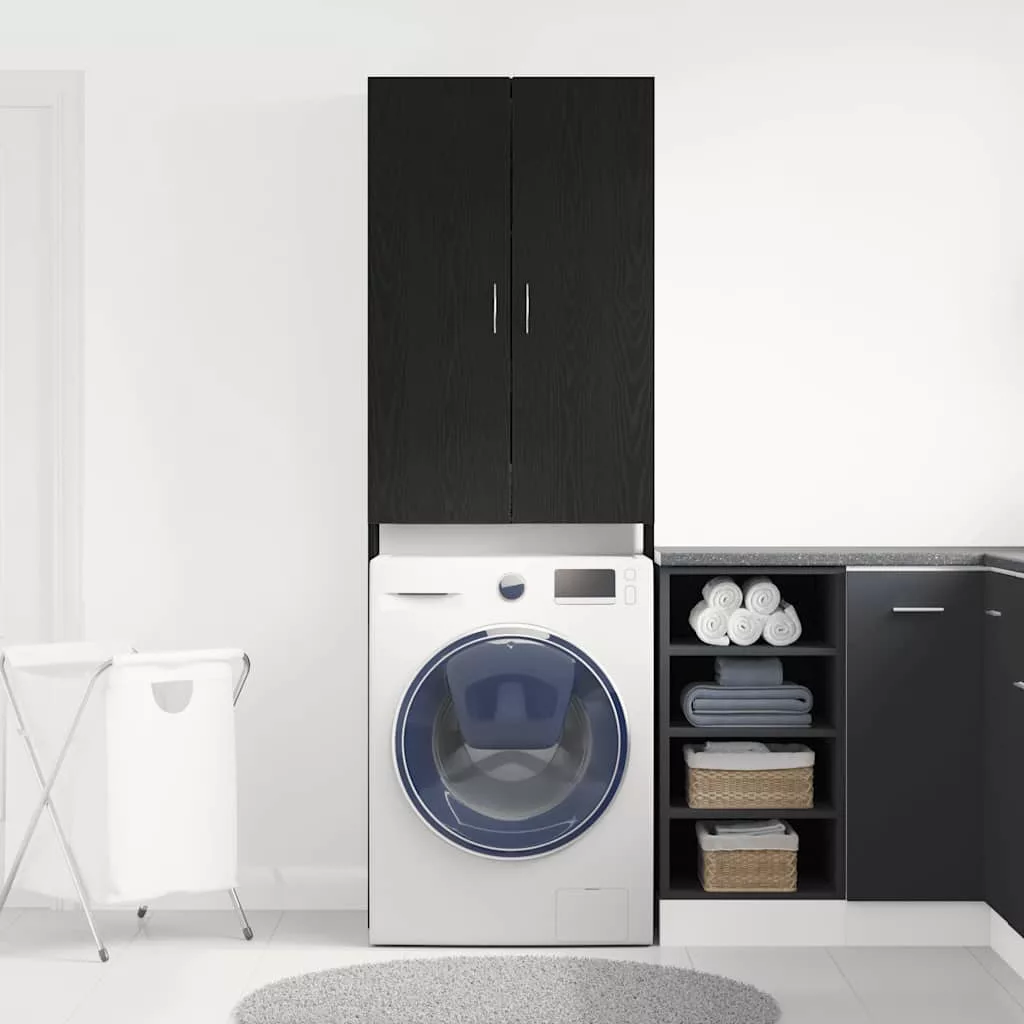 fekete tölgy színű mosógépszekrény 64 x 25,5 x 190 cm