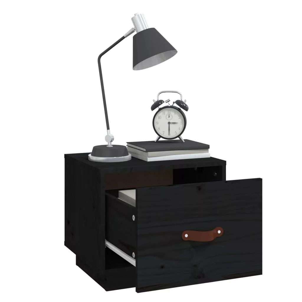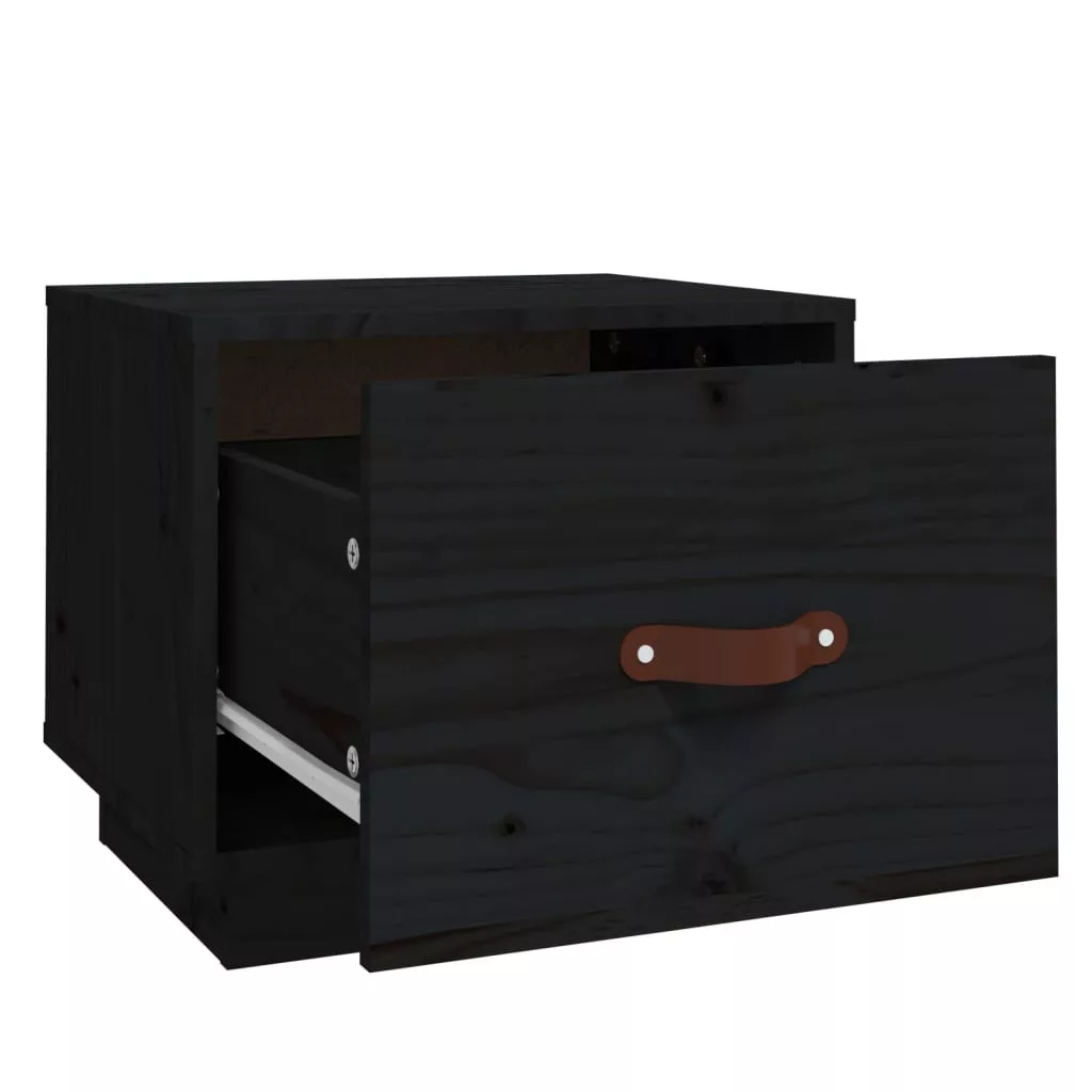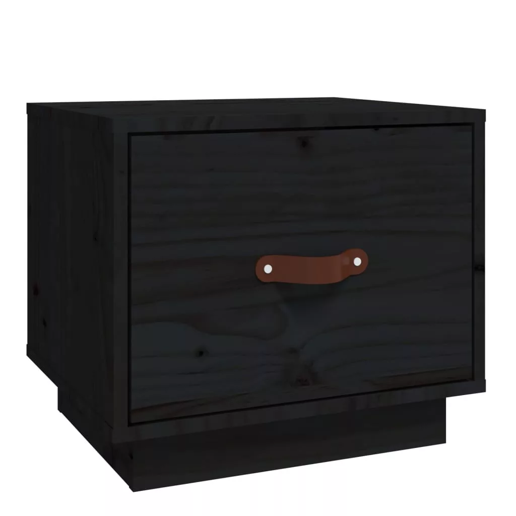 fekete tömör fenyőfa éjjeliszekrény 40 x 34 x 35 cm