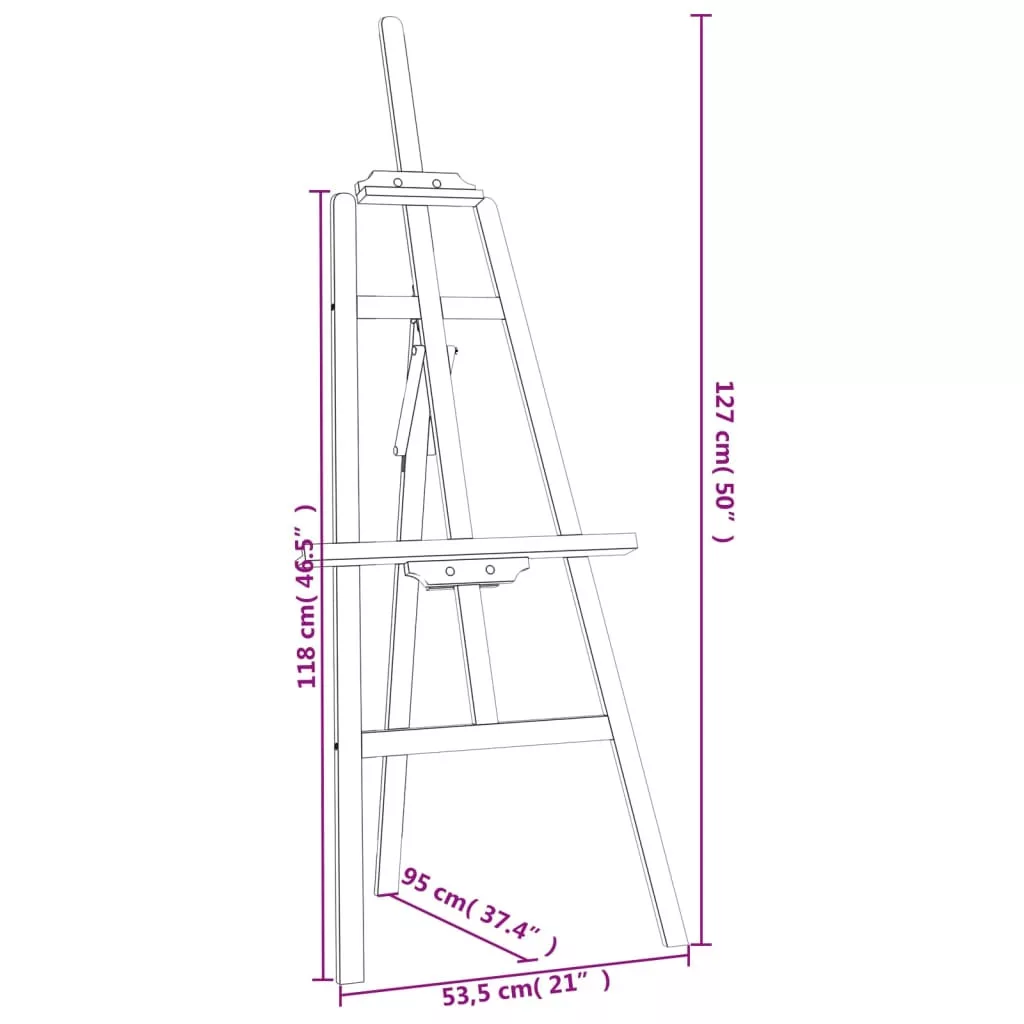 Ez a fából készült festőállvány jó segítséget nyújt a festéshez, művészeknek, diákoknak, profiknak és amatőröknek is egyaránt tökéletes! Háromszög alakú szerkezet: A festőállvány robusztus háromszög alakú, amely minimálisra csökkenti az ingadozást, így stabil festési feltételeket biztosít. Állítható magasság és szög: A magasságot a fogantyú meghúzásával és megemelésével állíthatja be, hogy illeszkedjen egy legfeljebb 107 cm magas vászonhoz. Ezenkívül beállíthatja a festőállvány dőlésszögét is, ezáltal lehetővé téve a kényelmes festést különböző szögekből. Erős anyag: A tömör fenyőfa egy gyönyörű természetes anyag. A fenyőfa egyenes erezetű, a csomók pedig jellegzetes, rusztikus megjelenést biztosítanak az anyagnak. Ez a tömör fenyőfából készült láda erős és stabil. Széleskörű felhasználás: Ez a művészi festőállvány tökéletes festéshez és prezentációhoz, és a legjobb kiállítóeszköz a képek megjelenítéséhez különféle alkalmakkor, például esküvőkön, ünnepségeken, szupermarketekben, múzeumokban, éttermekben, művészeti kiállításokon és így tovább.