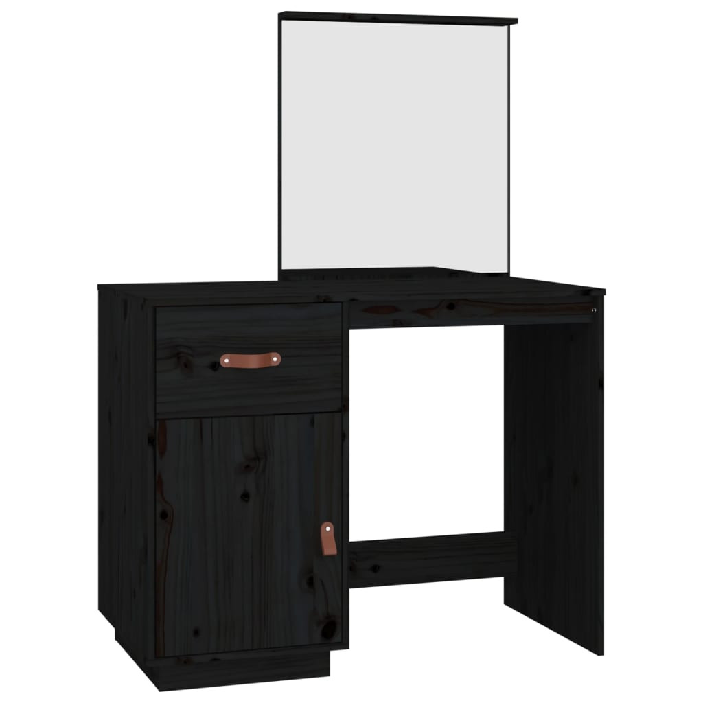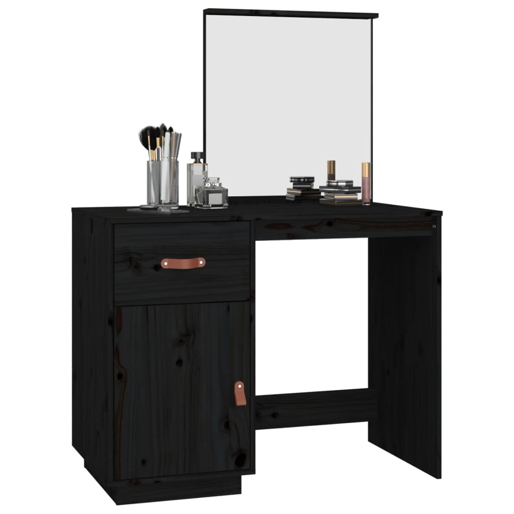 fekete tömör fenyőfa fésülködőasztal 95 x 50 x 134 cm