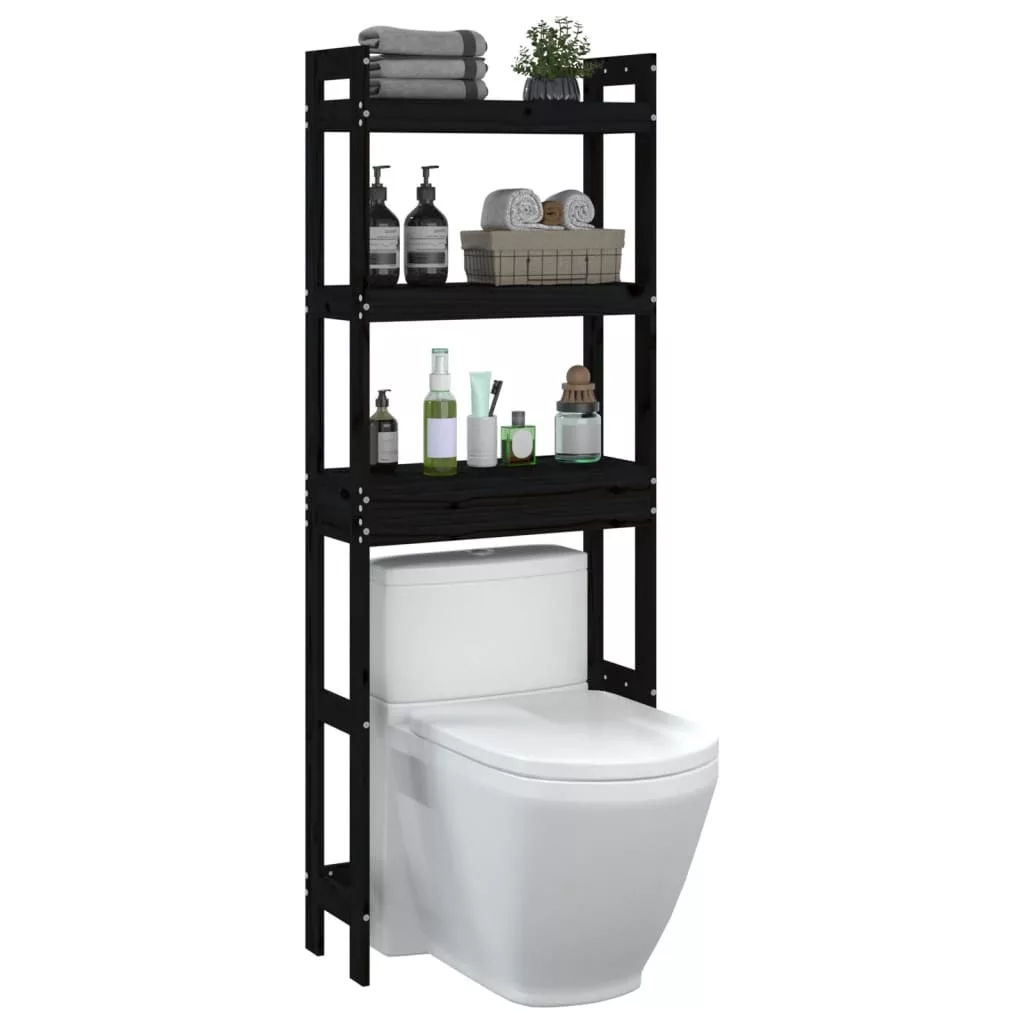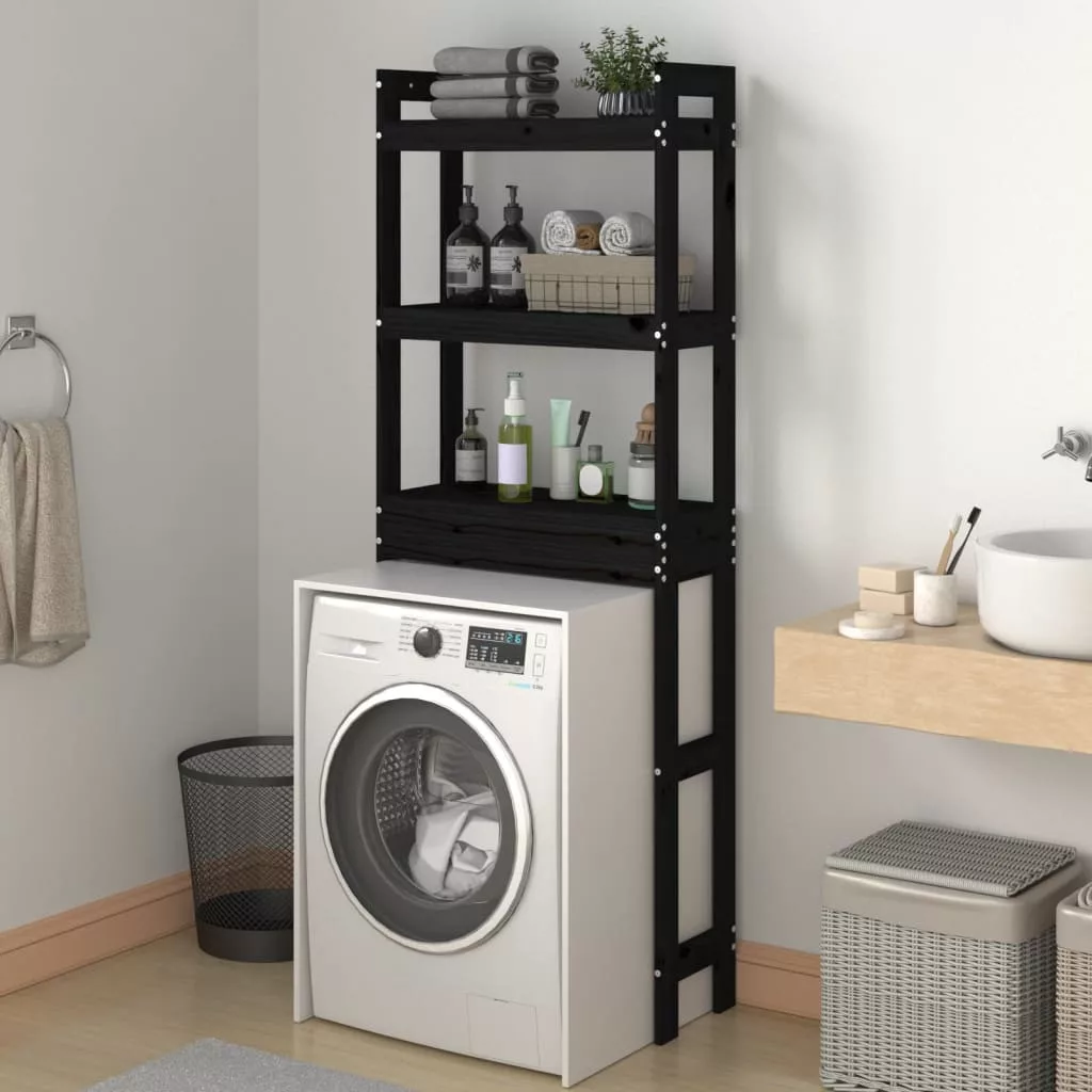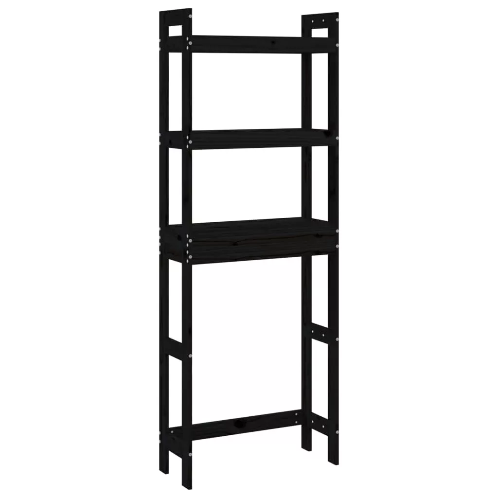 fekete tömör fenyőfa fürdőszoba állvány 63x26x171 cm