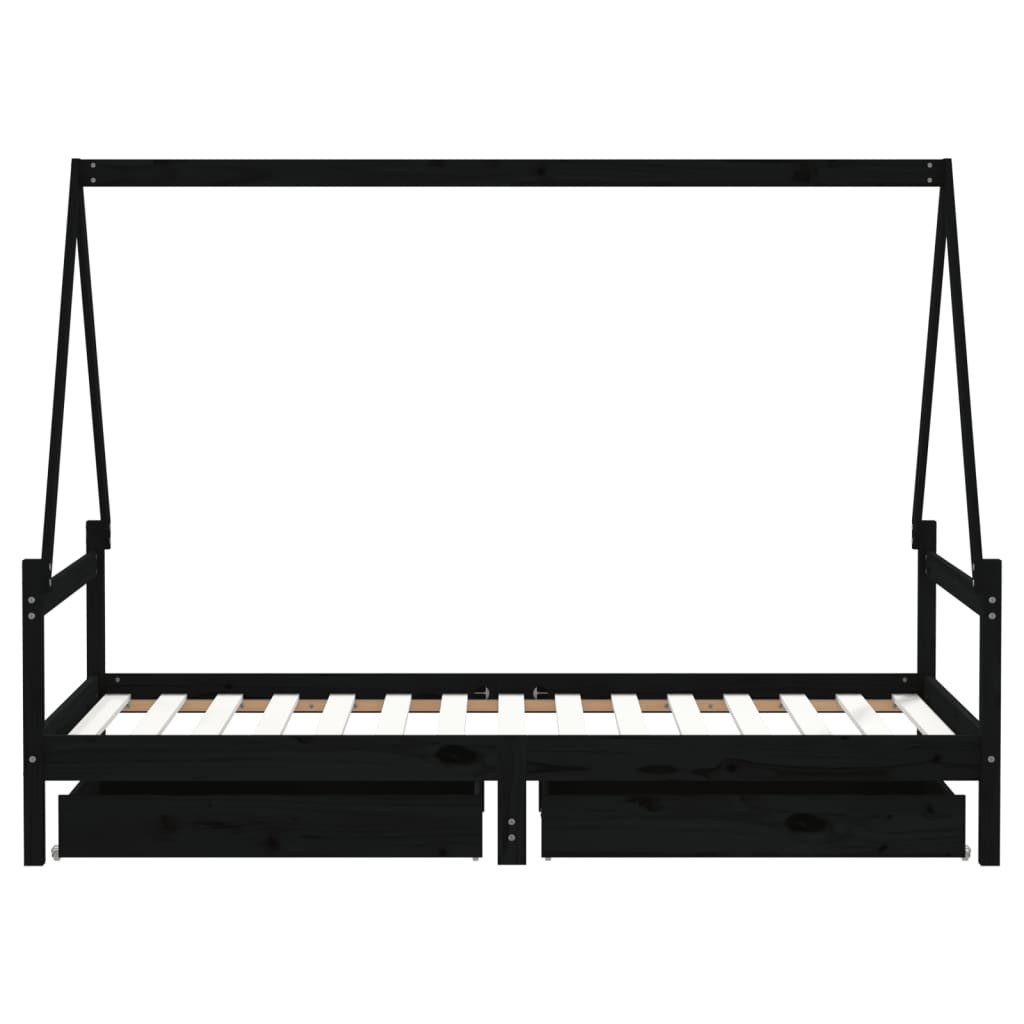 fekete tömör fenyőfa gyerekágy keret fiókkal 90x190 cm