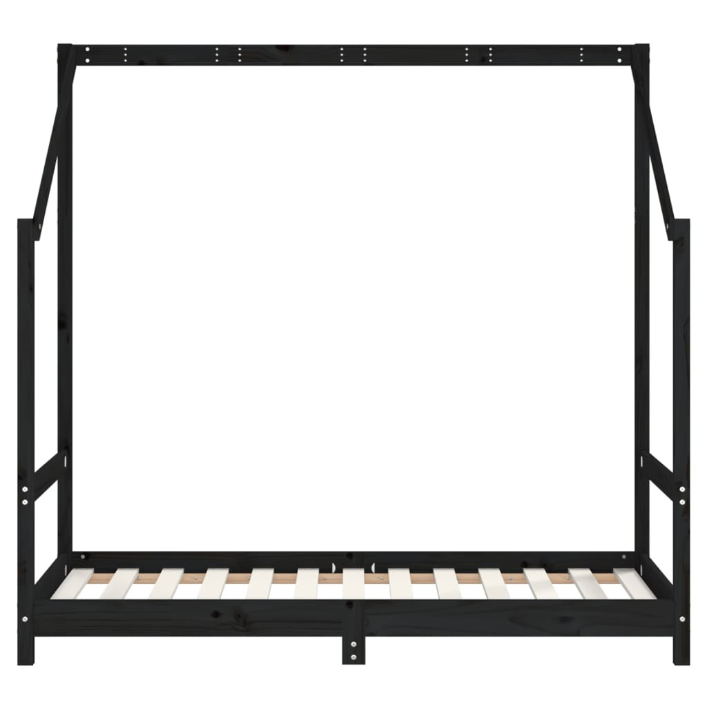 fekete tömör fenyőfa gyerekágykeret 2 x (80 x 160) cm