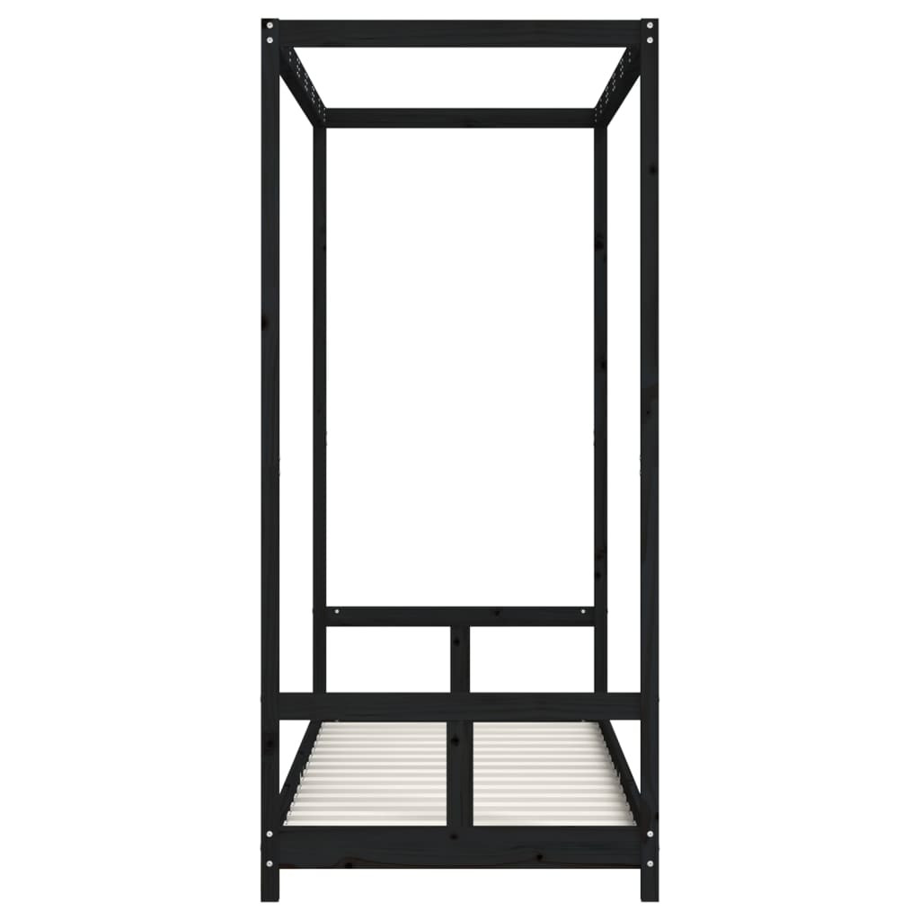fekete tömör fenyőfa gyerekágykeret 80 x 200 cm