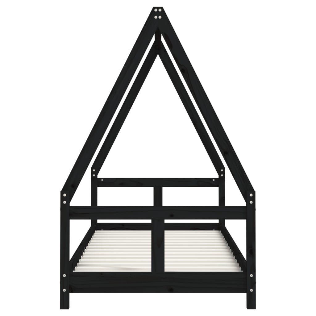 fekete tömör fenyőfa gyerekágykeret 80 x 200 cm