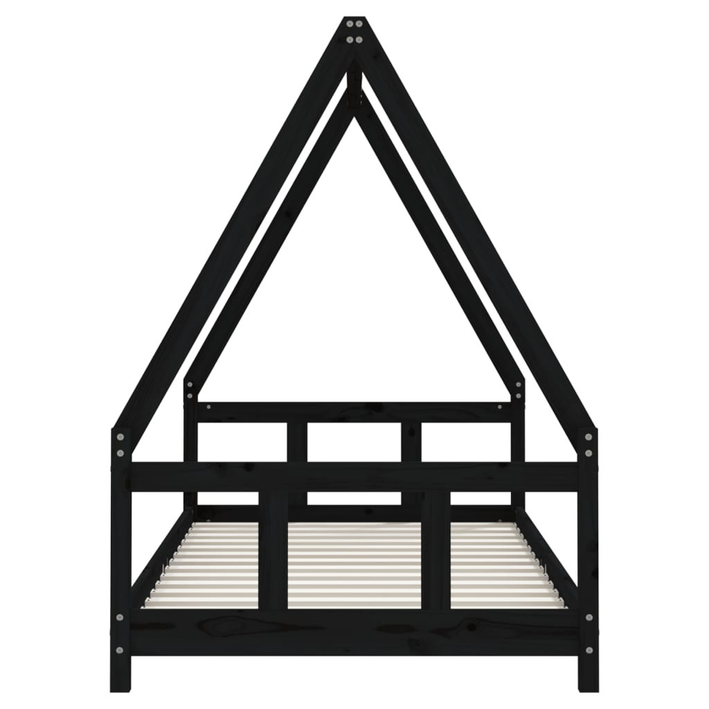 fekete tömör fenyőfa gyerekágykeret 90 x 190 cm