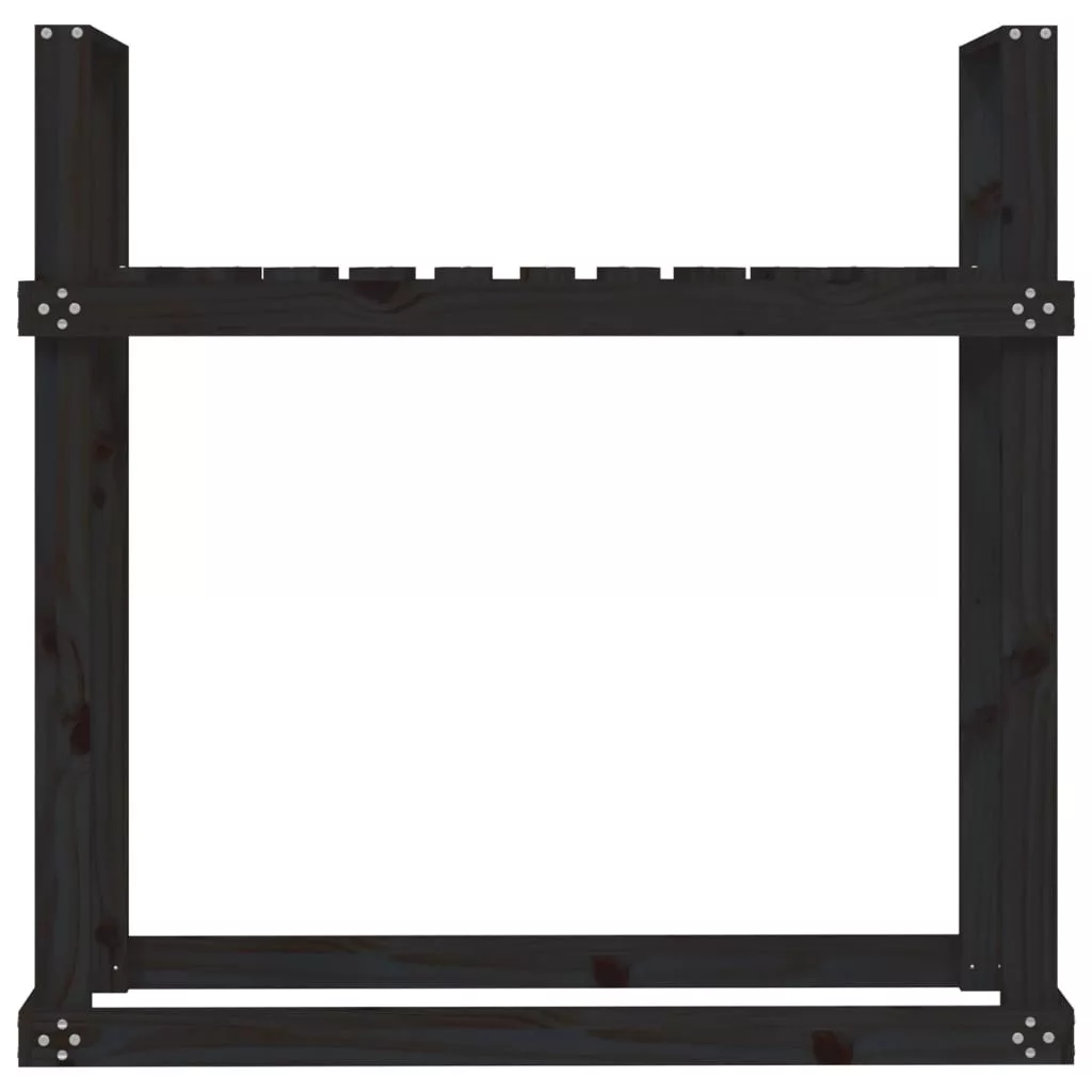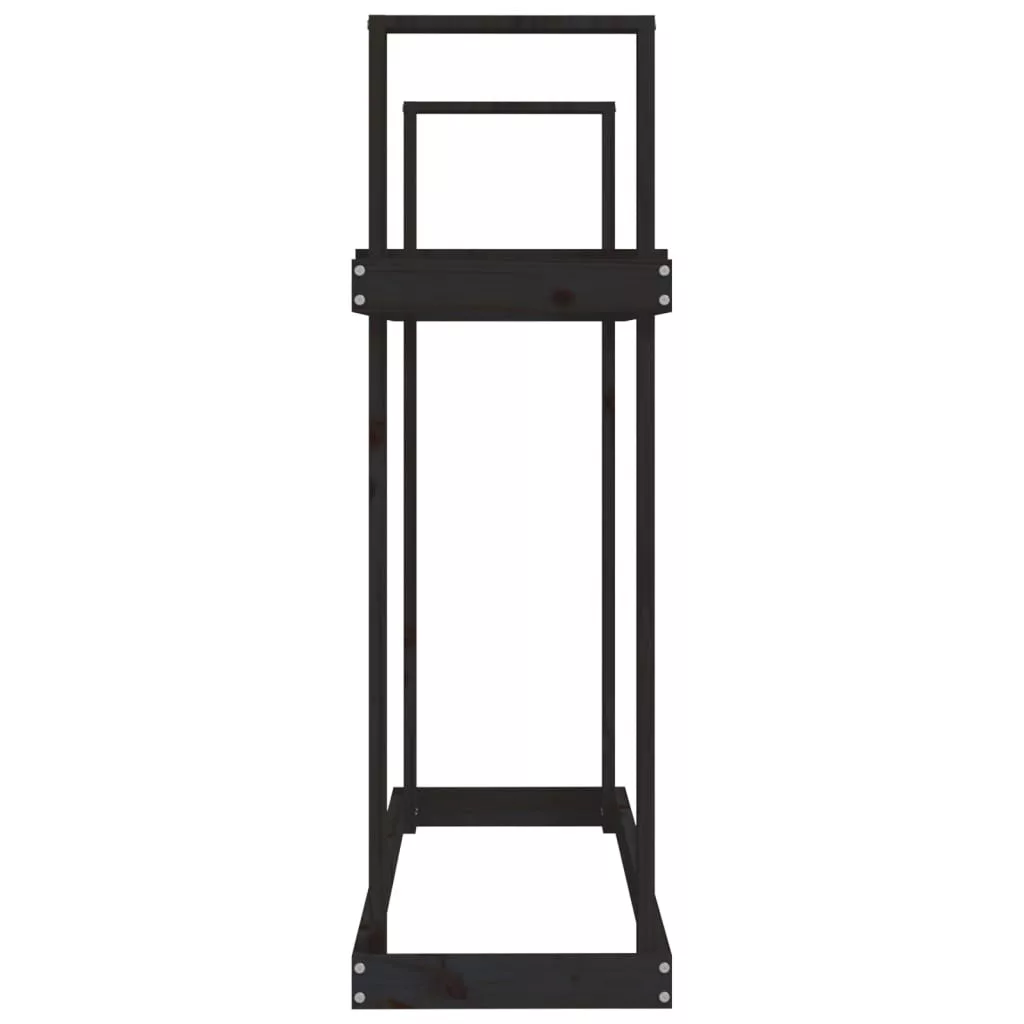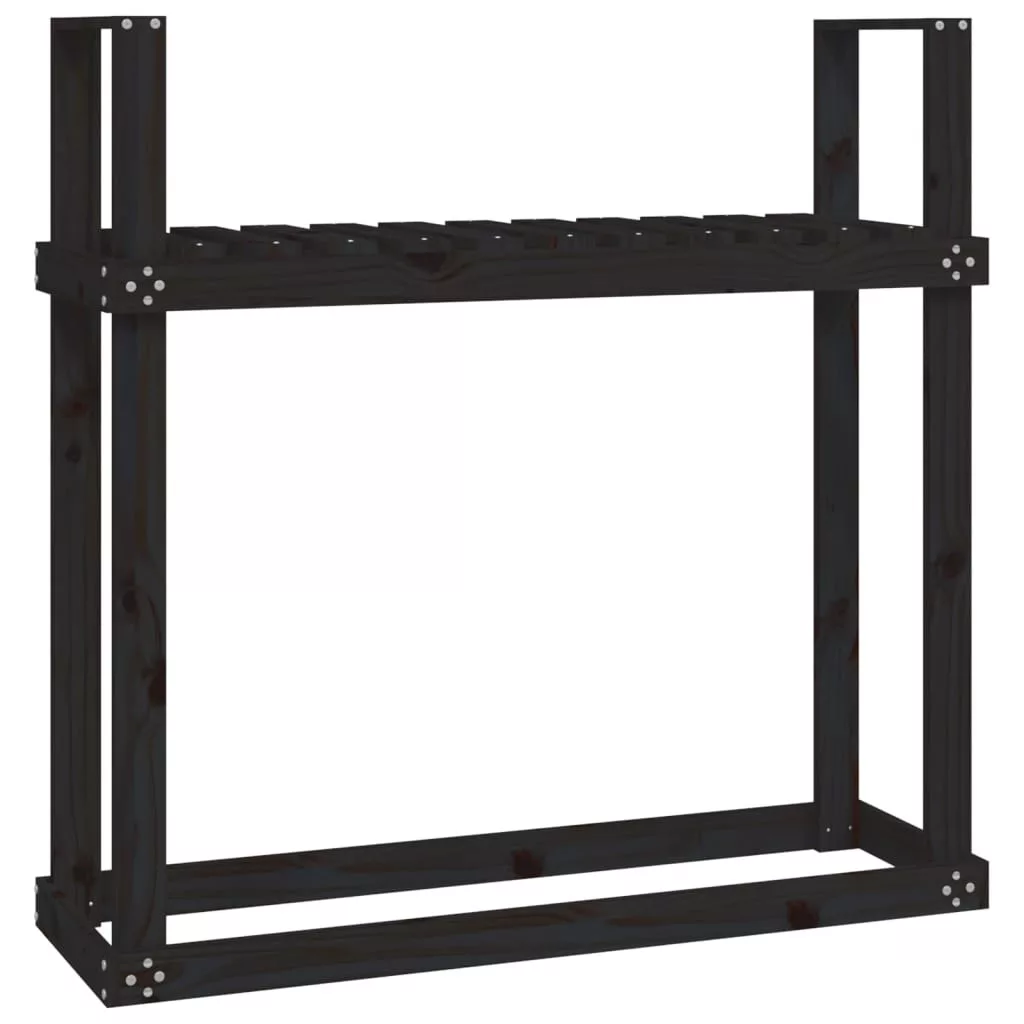 fekete tömör fenyőfa tűzifatartó állvány 110x35x108,5 cm