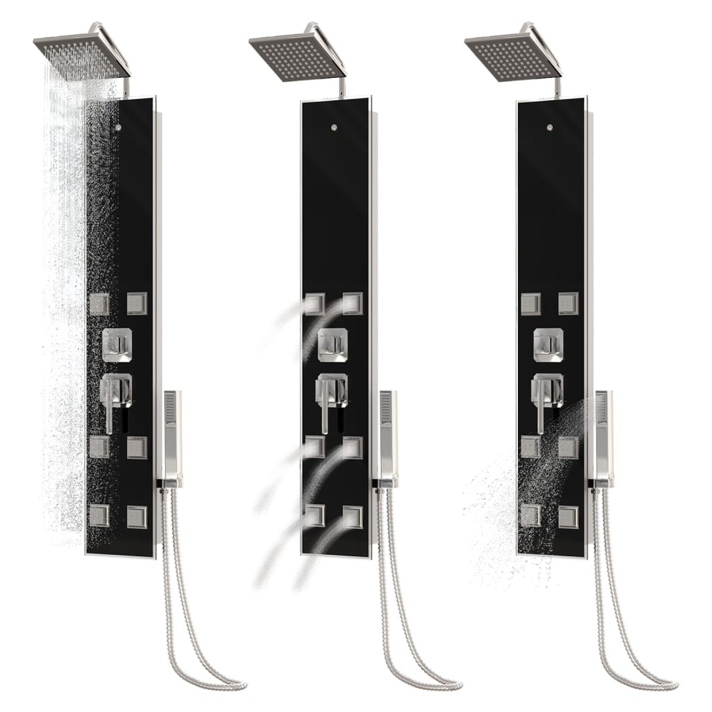 Ez a stílusos, többfunkciós zuhanyrendszer fürdőszobája nagyszerű kiegészítője lesz. A zuhanypanel rozsdamentes acélból és edzett üvegből készült. Az edzett üveg olyan kontrollált hő- vagy vegyi kezelés eredménye, ami a normál üveghez képest tartósabbá és biztonságosabbá teszi. Három zuhanyozási módot kínál, amelyek egyszerűen kiválaszthatóak: esőztető zuhany, hidromasszázs és kézi zuhanyozás. A szilikon fúvókák ellenállnak a vízkő lerakódásának. Kényeztesse magát egy pihentető zuhanyzással és élvezze ennek a gyönyörű dizájnnal rendelkező zuhanyzópanel-rendszernek a modern stílusát!