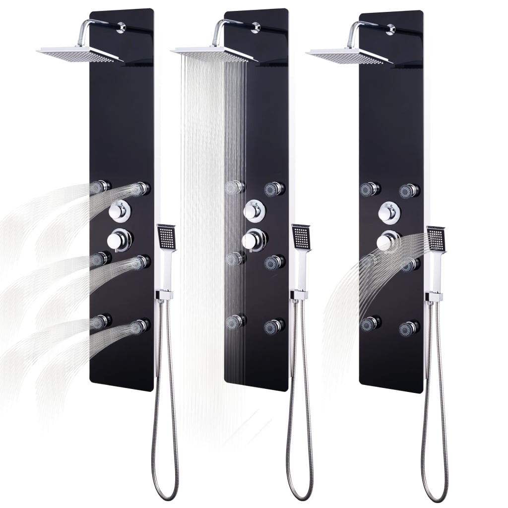 fekete üveg zuhanypanel 25 x 44,6 x 130 cm