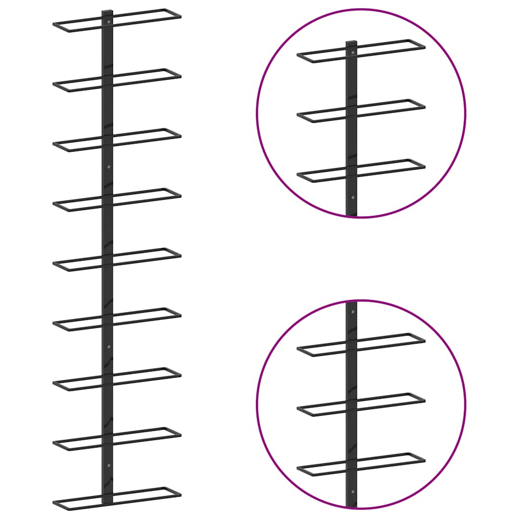 fekete vas falra szerelhető bortartó állvány 9 palacknak