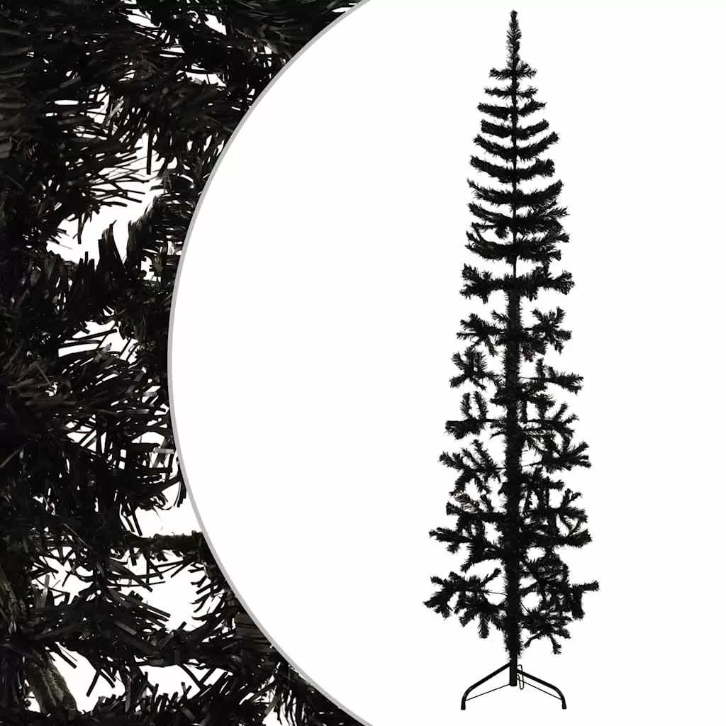 fekete vékony fél műkarácsonyfa állvánnyal 180 cm