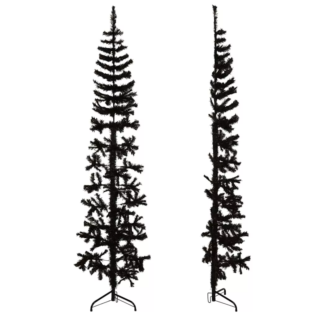 fekete vékony fél műkarácsonyfa állvánnyal 210 cm