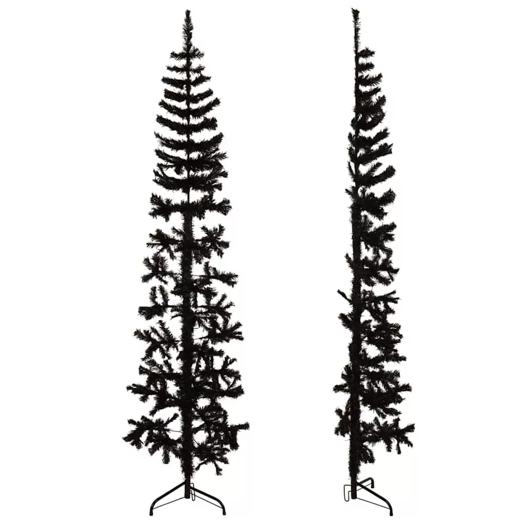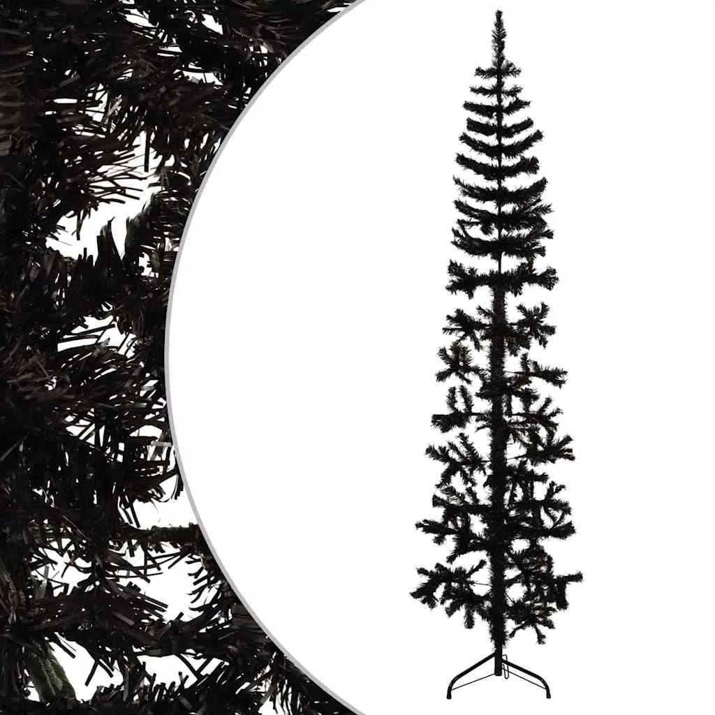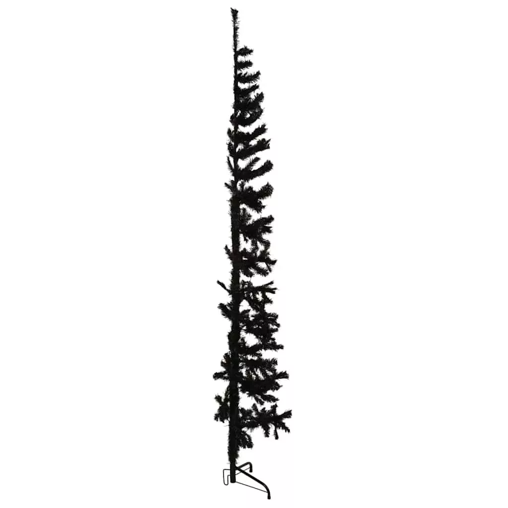 fekete vékony fél műkarácsonyfa állvánnyal 240 cm
