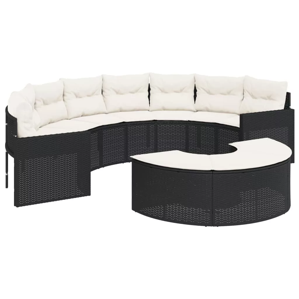 félkör alakú fekete polirattan kerti kanapé párnákkal