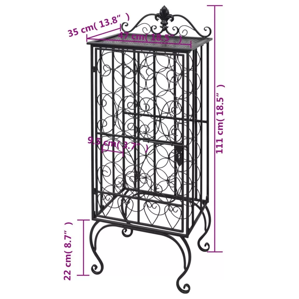 Ez a bortartó állvány bárhová is teszi, magára vonzza a tekinteteket. Kovácsolt vasból készült, valamint porszórásos felülkezelést kapott, így rozsdamentes és generációkon át nagyszerű szolgálatot tesz. Ez a bortartó 28 palack zárt ajtók mögött történő tárolására alkalmas. Klasszikus és elegáns stílusa romantikus érzéseket kelt. Kiváló ajándéknak is és mindazoknak, akik a finom borok hívei. Állítsa fel otthonában ezt a vonzó bortartó állványt és használja egy életen át! Figyelem! A felborulás elkerülése érdekében ezt a terméket a mellékelt fali rögzítőeszközzel kell használni.