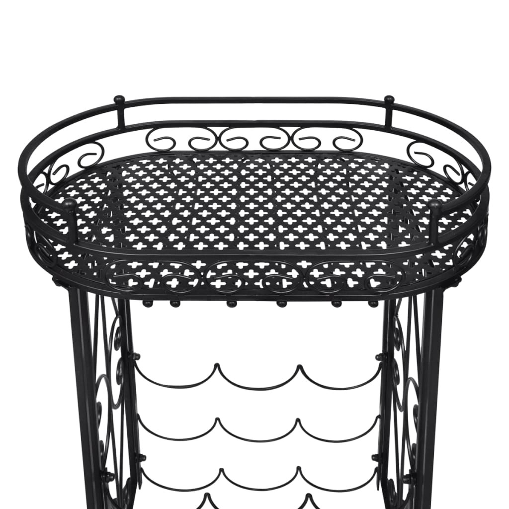 Ez a bortartó állvány bárhová is teszi, magára vonzza a tekinteteket. Kovácsolt vasból készült, valamint porszórásos felülkezelést kapott, így rozsdamentes és generációkon át nagyszerű szolgálatot tesz. A borállvány 9 palack befogadására alkalmas. Rácsos tetejének köszönhetően akár asztalként is használható. A tető alatt lévő kampókra borospoharak akaszthatók. Ez a bortartó állvány garantáltan étkezőasztala tökéletes kiegészítője lesz. Klasszikus, elegáns stílusa romantikus érzéseket kelt. Nagyszerű ajándék lehet olyan barátok és ismerősök számára, akik kedvelik a borokat. Állítsa fel otthonában ezt a vonzó bortartó állványt és használja egy életen át! Figyelem! A felborulás elkerülése érdekében ezt a terméket a mellékelt fali rögzítőeszközzel kell használni.
