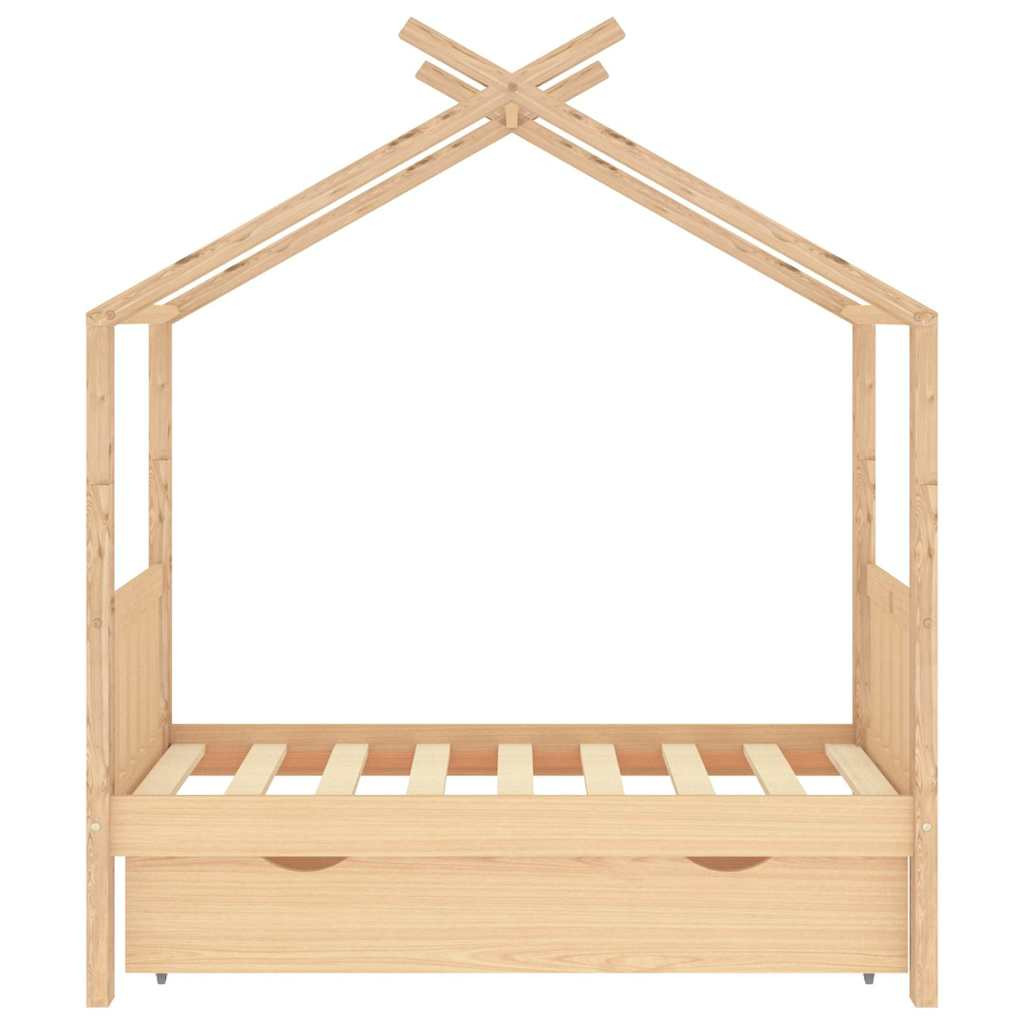 fiókos tömör fenyőfa gyerekágykeret 70 x 140 cm