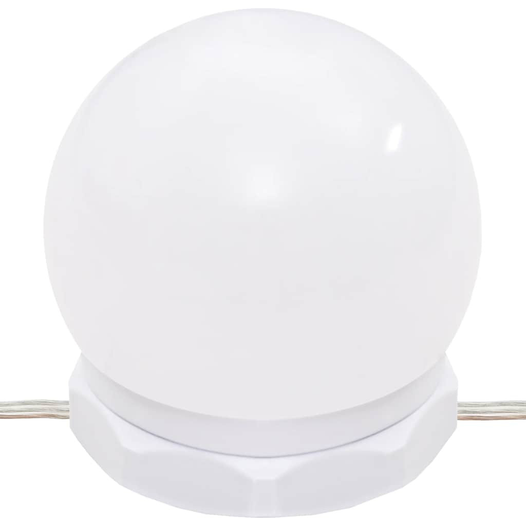 A kifinomult egyenes vonalaknak és az egyedi stílusú aszimmetrikus formának köszönhetően ez a fésülködőasztal biztosan felkelti a figyelmet! Tartós anyag: A szerelt fa kivételes minőségű, sima felületű, szilárd, stabil, és ellenáll a nedvességnek.LED-világítás: A pipereasztal USB-s LED-izzókkal van ellátva, amelyek egyszerűen átkapcsolhatók melegről hideg fehér fényre. A tükör körüli LED-izzók az Ön szépségét is megvilágítják.Praktikus tárolóhely: Ez a sminkasztal továbbá nyitott polcokkal és két fiókkal rendelkezik, így helyet nyújt sminkkellékei számára és egyéb apróságai rendszerezésére. Figyelem:A dőlés megakadályozása érdekében a terméket a mellékelt tartóelem segítségével rögzíteni kell a falhoz. Megjegyzés:Az egyszerű összeszerelés érdekében minden termékhez mellékelünk összeszerelési útmutatót.