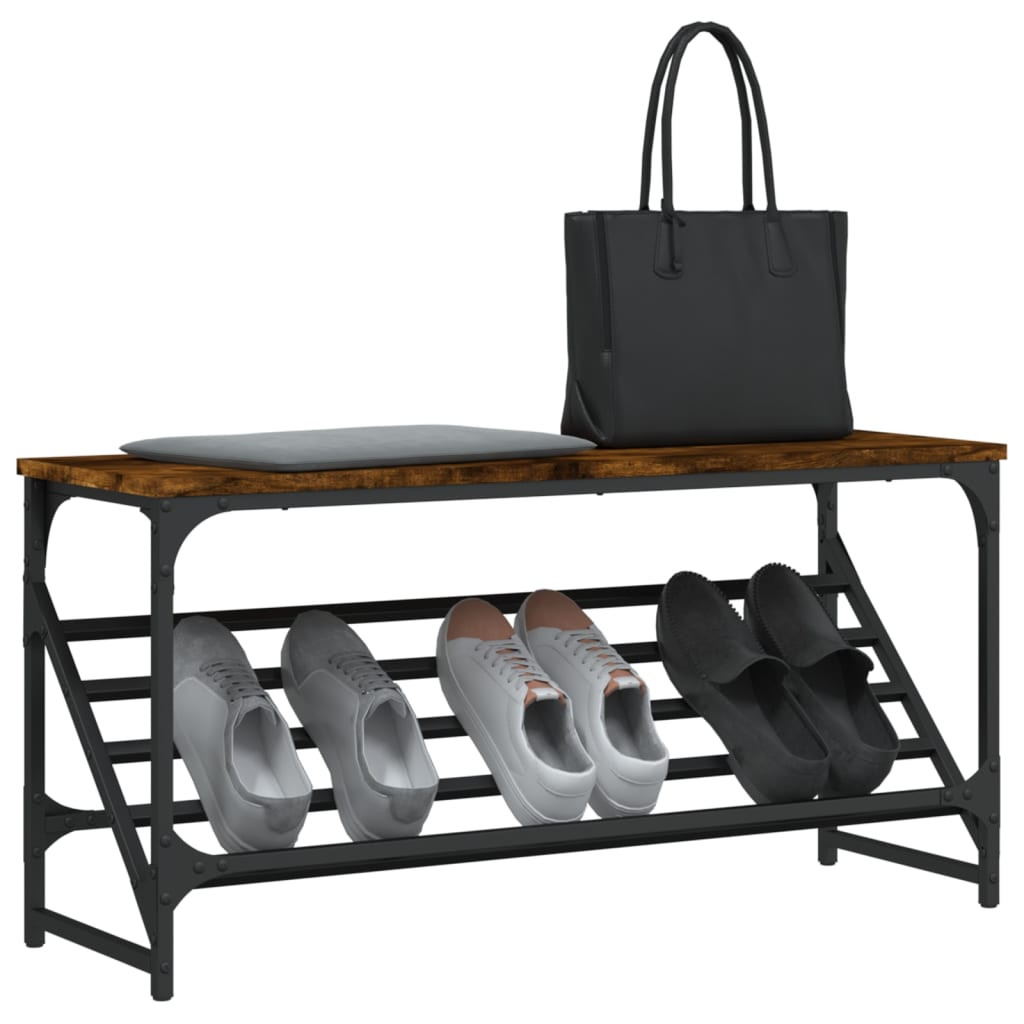 füstös tölgy színű szerelt fa cipőtartó 90x30x45 cm