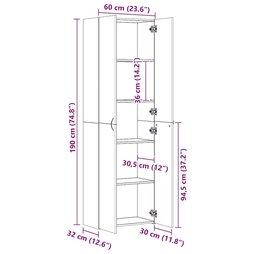 Fedezze fel az elegancia iránti szenvedélyét ezzel a letisztult, minimalista stílusú irodaszekrénnyel! Tökéletes választás aktái és egyéb irodai kellékei rendezett tárolására. Prémium minőségű anyag: A szerelt fa kivételes minőségű, sima felületű, szilárd, stabil és ellenáll a nedvességnek.Bőséges tárolóhely: Az iratszekrény 2 ajtóval és 5 rekesszel rendelkezik, így elegendő helyet biztosít az akták tárolására és különböző kategóriákba rendezésére.Könnyen tisztítható felület: Ez a tárolószekrény nedves ruhával könnyen tisztítható. Megjegyzés:A falon belüli csavar(ok) és dugó(k) nem alaptartozékok. Keressen és használjon a falának megfelelő csavar(oka)t és dugó(ka)t. Ha bizonytalan, kérje szakember tanácsát. Gondosan olvassa el és kövesse a használati utasítás minden lépését. Figyelem:A dőlés megakadályozása érdekében a terméket a mellékelt tartóelem segítségével rögzíteni kell a falhoz.