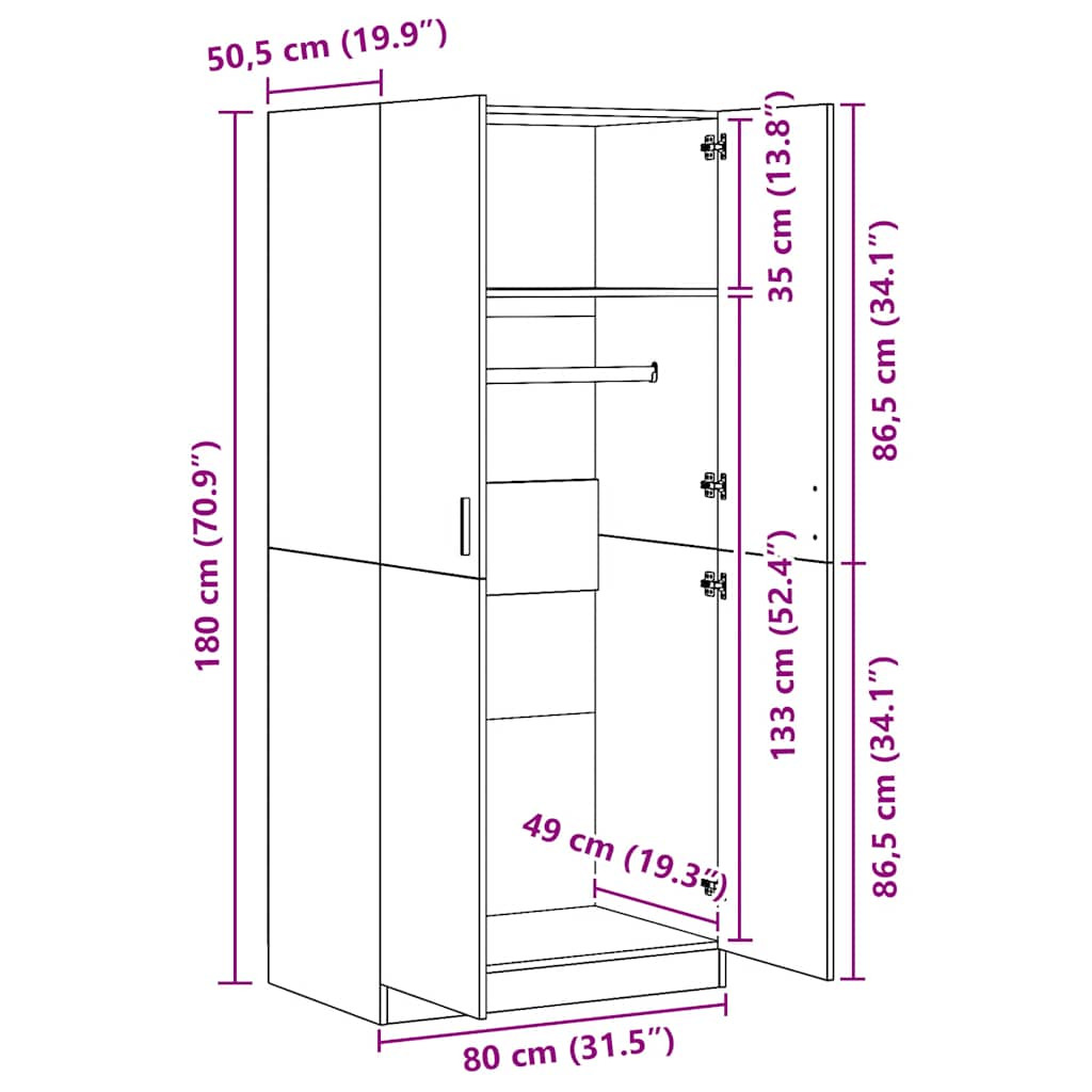 füstös tölgy színű szerelt fa ruhásszekrény 80 x 52 x 180 cm