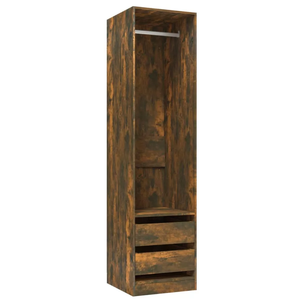 füstös tölgy színű szerelt fa szekrény fiókokkal 50x50x200 cm