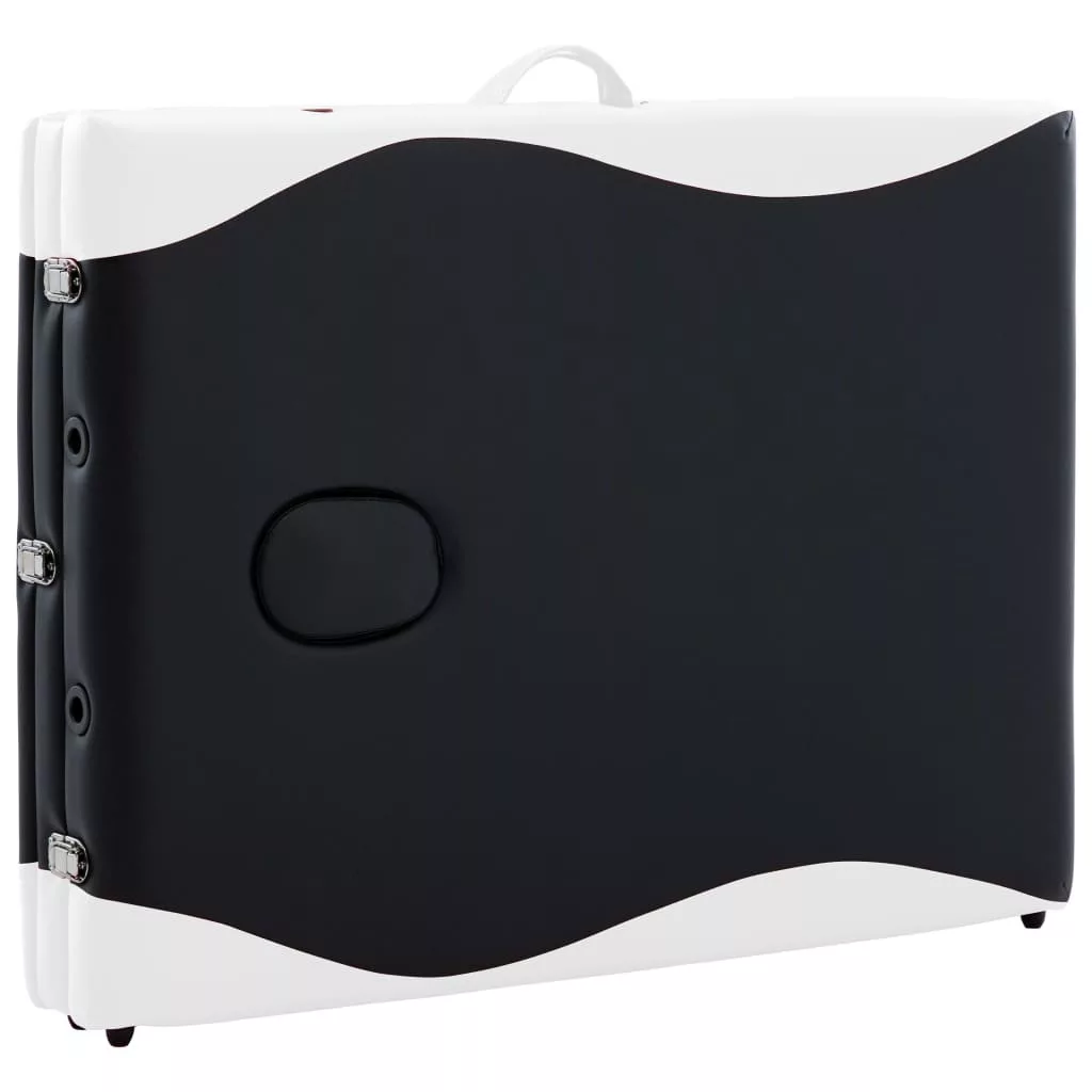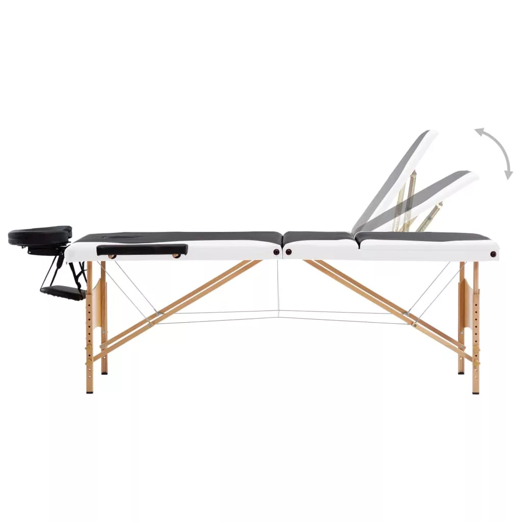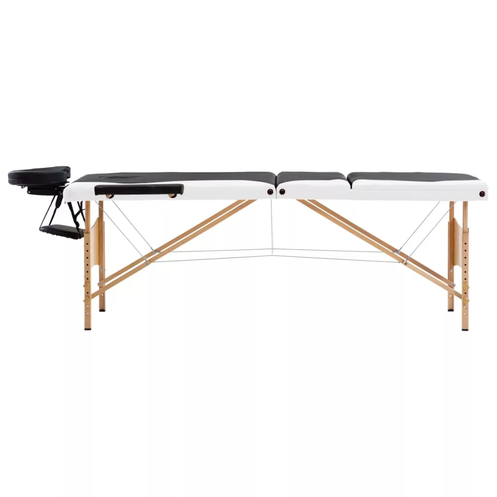 háromzónás fekete és fehér összecsukható fa masszázsasztal