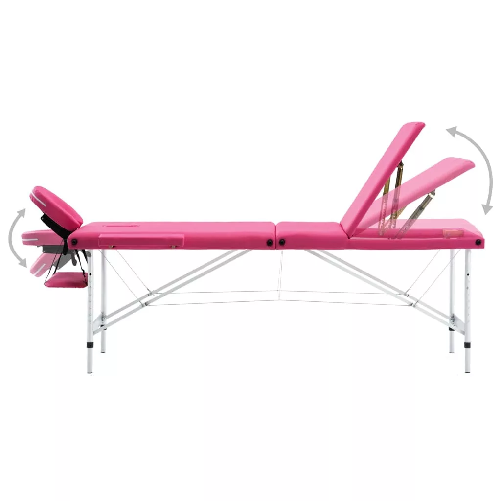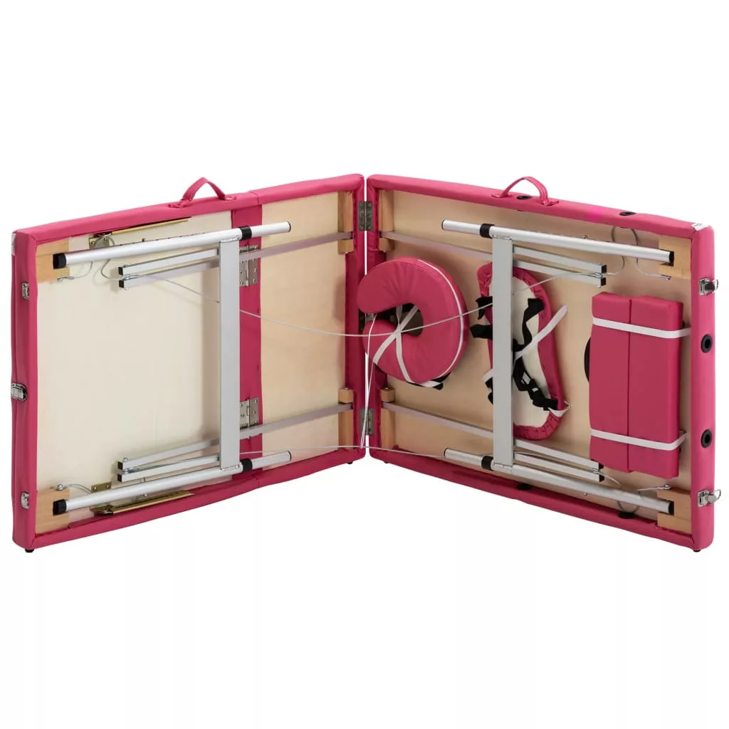 háromzónás rózsaszín összecsukható alumínium masszázsasztal