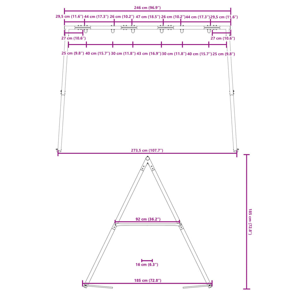 Varázsolja kertjét gyerekei játszóterévé ezzel a hintavázzal! Nagy teherbírású fém anyag: Ez a hintaváz festett acélcsövekből készült, amelyek rozsdaállók, rendkívül erősek, és ellenállnak a deformációnak, kiváló stabilitást és tartósságot biztosítva. Szilárd és stabil szerkezet: Ez a hintaváz A-alakú vázzal rendelkezik, amely erős támaszt biztosít, és nem billen fel. A megerősített csavarozás jelentősen megerősíti a teljes szerkezetet. Emellett négy további cövek növeli a stabilitást és a biztonságot. A legtöbb hintához alkalmas: Ez a sokoldalú hintaállvány különféle hintákkal használható, például hintaüléssel, csészealjhintával, hálós ülőhintával, övhintával, trapézhintával, hintatárcsával, függő kagylószékkel stb. 2 felszerelési lehetőség: Ez a hintaváz két lehetőséget kínál a hinták felszerelésére: vagy három egyszemélyes hinta szerelhető fel, vagy egy csészealjhinta és egy egyszemélyes hinta. Széleskörű felhasználás: Ez a hintaváz különféle helyeken helyezhető el, például kertben, hátsó udvaron, óvodában, játszótéren stb. Jó tudni: A szállítás a hintavázat tartalmazza, a hintaülések külön vásárolhatók meg. Látogasson el webáruházunkba, hogy megtalálja a hozzáillő hintaüléseket vagy tartozékokat a hintakészlet teljessé tételéhez! Figyelem. 3 év alatti gyermekek számára nem alkalmas. Csak háztartási használatra.