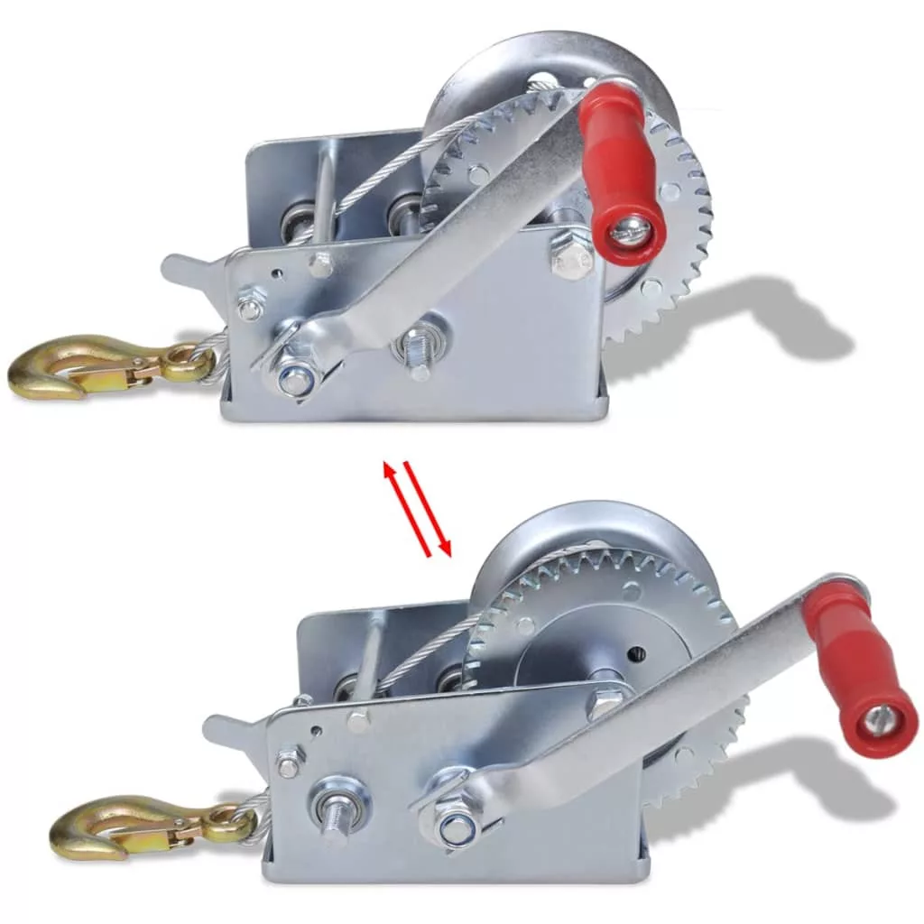 Ez az 1130 kg teherbírású kézi csörlő ideális eszköz nagy vagy nehéz tárgyak húzásához. Ez a kiváló minőségű kézi csörlő 10 m-es kábelhosszal rendkívül erős. Az felépítésénél használt kiváló minőségű vasnak köszönhetően nagyon strapabíró. Ez a kiváló minőségű kézi csörlő tökéletes kisteherautók, utánfutók kezeléséhez, valamint egyéb műveletekhez. A csörlő fogantyúját két különálló tengellyel való használatra tervezték; mindegyik tengelynek megvan a maga áttételi aránya, így választhat a gyors (ha nagyobb erő szükséges) vagy a lassú húzás (ha kevesebb erő szükséges, jobb nehéz tárgyak húzásához) között. Webáruházunkban megtalálja a hozzáillő csónak utánfutó csörlő állványt (SKU 90634) a teljes készlethez. Ezt a terméket húzásra tervezték, nem emelésre. Nem használható robbanásveszélyes vagy korrozív környezetben. • Mindig ügyeljen a használat közben fellépő hibákra. • Minden használat előtt ellenőrizze a terméket. • Soha ne terhelje túl. • Soha ne tegye a kezét vagy más testrészét a hajtómű, a felni és a gördülő kábel közelébe. A csörlő használatakor mindig viseljen kesztyűt.