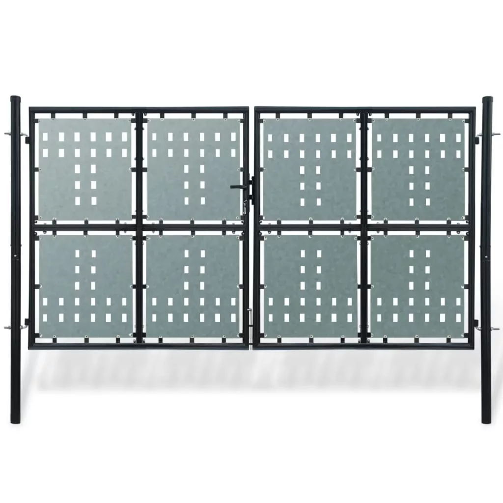Ez a kerítés kapu praktikus és modern kialakítású bejárat lehet kertje és a külvilág között. Rendkívül stabil és strapabíró, így biztonságos válaszfalat kínál a kerthez, a belső udvarhoz vagy akár a teraszhoz. A dekoratív lyukakkal ellátott horganyzott lemezek megerősítik a vázat, így az általunk kínált kerti kapu rendkívül ellenálló és nagyfokú biztonságot nyújt, emellett pedig meseszép bejárata lehet otthonának. Strapabíró acélból készült, porszórással bevont, így rozsda- és korróziómentes. Ez a kerítéskapu két szilárd póznával és erős zsanérokkal rendelkezik, így könnyen felállítható, valamint biztonságos zárrendszerrel lett ellátva, a szett részeként pedig három azonos kulcs is jár hozzá. Ez a kerítés kapu a stílus, a szilárdság, a stabilitás és a korróziómentesség fantasztikus kombinációja!