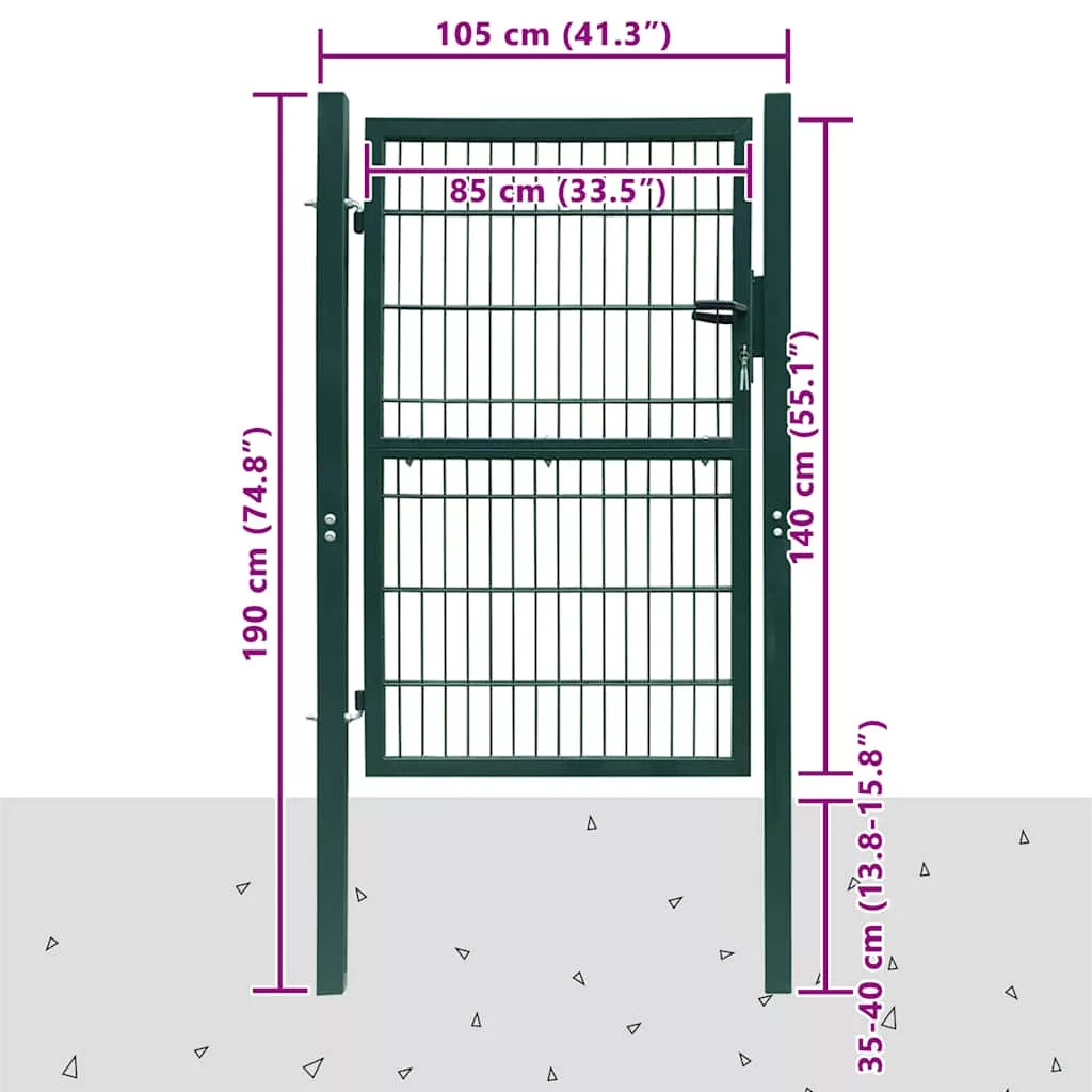 2D kerítéskapu (egyszárnyú) zöld 100 x 140 cm