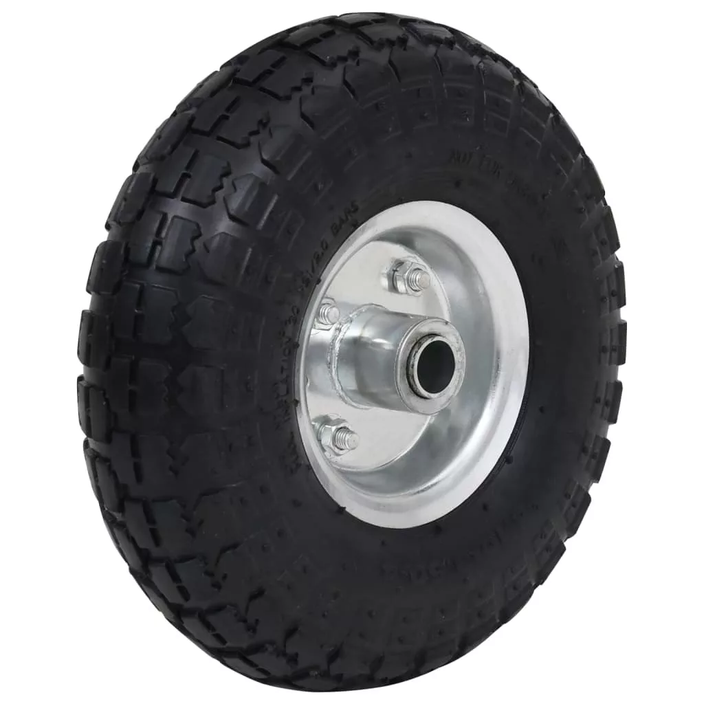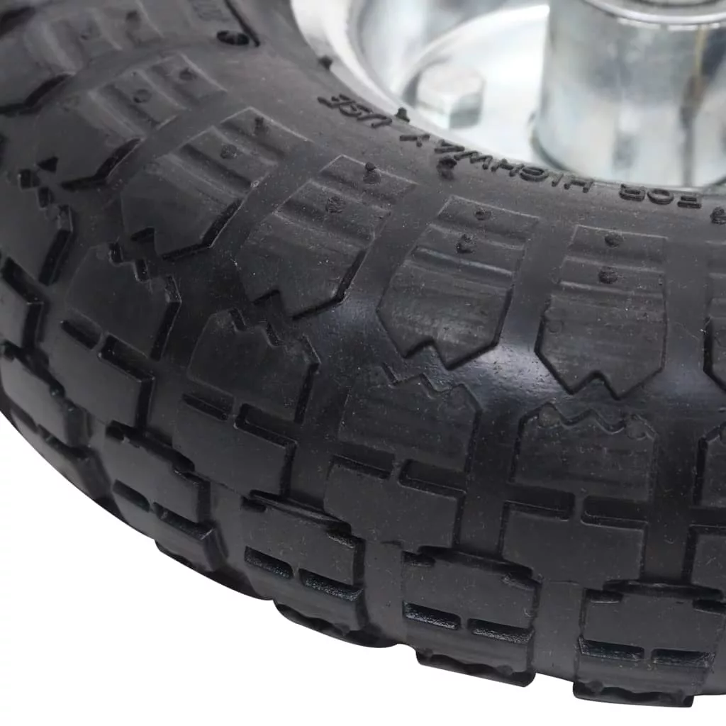 Ezek az átlyukasztási ellenálló képességgel rendelkező targonca pótkerekek ideálisak a fokozott igénybevételre; rakományok molnárkocsin, kézikocsin, szervizkocsin, anyagmozgató kocsin, talicskán stb. történő mozgatásához egyenetlen talajon is. A pneumatikus abroncsok strapabíró, kopásálló gumiból készültek, és speciális futófelület-kialakítással rendelkeznek, ami nagyobb sebességnél is fokozott tapadást biztosít. A keréktárcsák erős fémből készültek. A pótkocsi kerekek univerzális méretűek, és könnyen felszerelhetők targoncákra, szervizkocsikra stb. A szállítmány 2 db kereket tartalmaz.