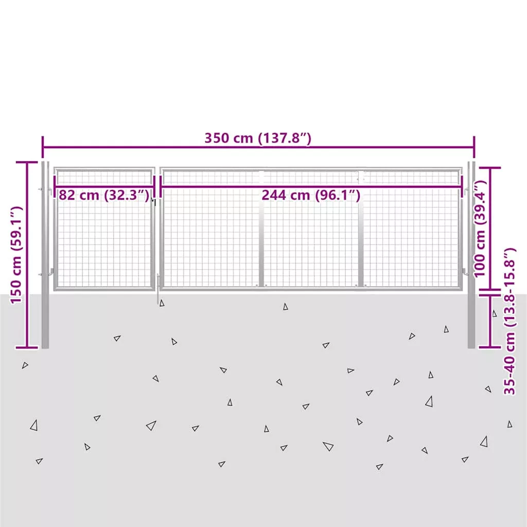 ezüstszínű acél kertkapu 350 x 100 cm