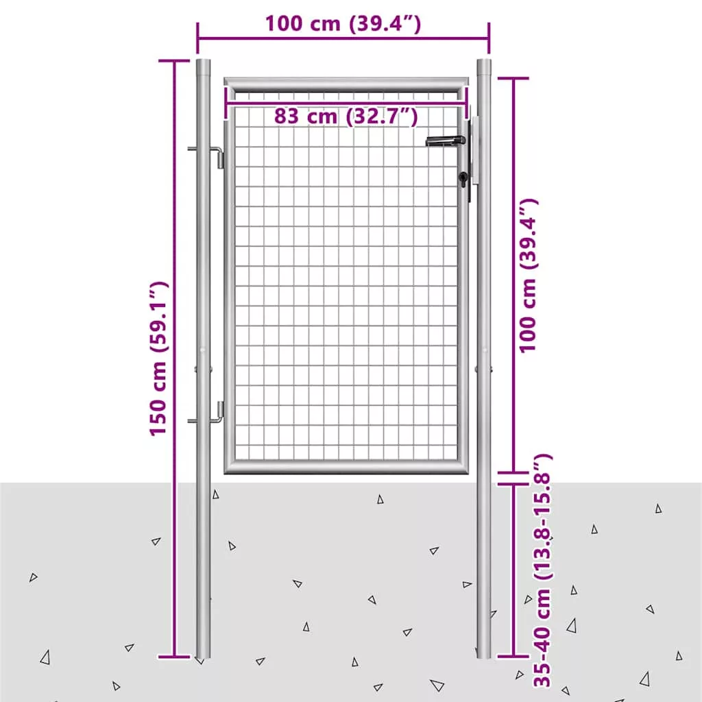 ezüst színű horganyzott acél kerti kapu 100 x 100 cm