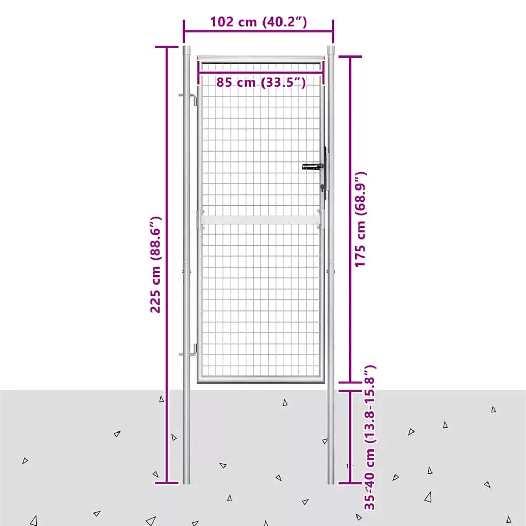 ezüst színű horganyzott acél kerti kapu 100 x 175 cm