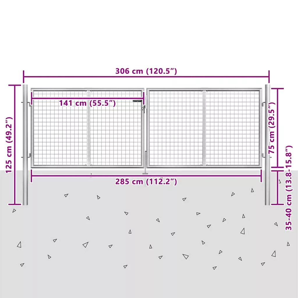 ezüst színű horganyzott acél kerti kapu 300 x 75 cm