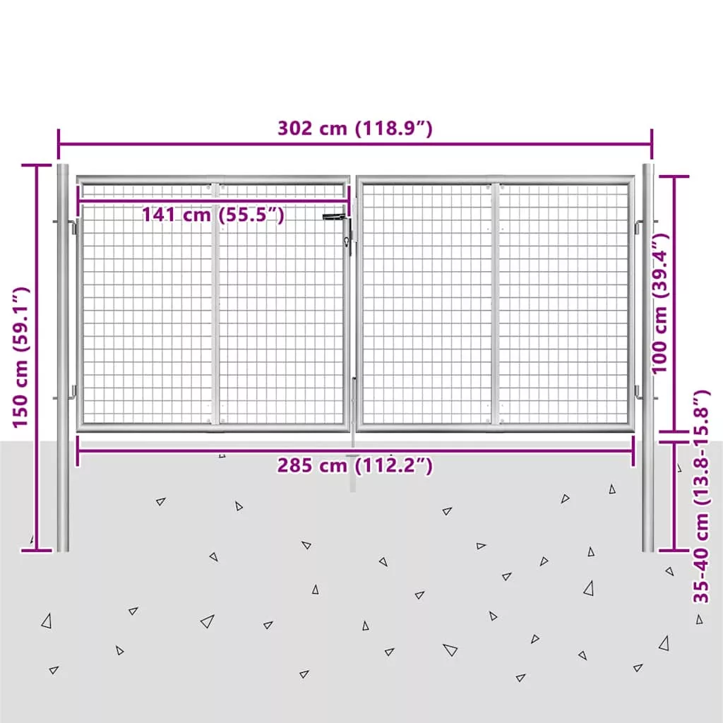 ezüst színű horganyzott acél kerti kapu 300 x 100 cm