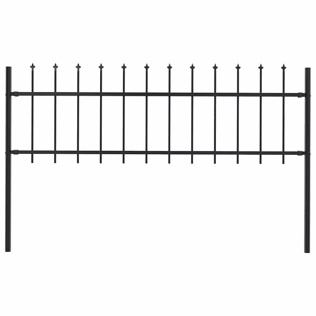 Határolja el kertjét, otthonát vagy sétálóösvényét ezzel az elegáns kerti kerítéssel! Ez a kiváló minőségű, hajlított tetejű, acél kerti kerítés összesen 1,8 méter hosszú, és kertjét, otthonát vagy kereskedelmi ingatlanát biztonságosan körülveszi. A függőleges elemek tetején lándzsahegy található, a vízszintes elemek merevítésként szolgálnak a keret megerősítéséhez, így ez a kerítés magas fokú biztonságot nyújt. Nagy teherbírású, porszórt bevonatú acélból készült, így ez a kültéri kerítés erős és stabil, masszív és strapabíró. A mellékelt szerelési anyagokkal a kerti kerítés könnyen összeszerelhető. Megjegyzés: Több elemet is vehet, így a kerítés igény szerint meghosszabbítható.