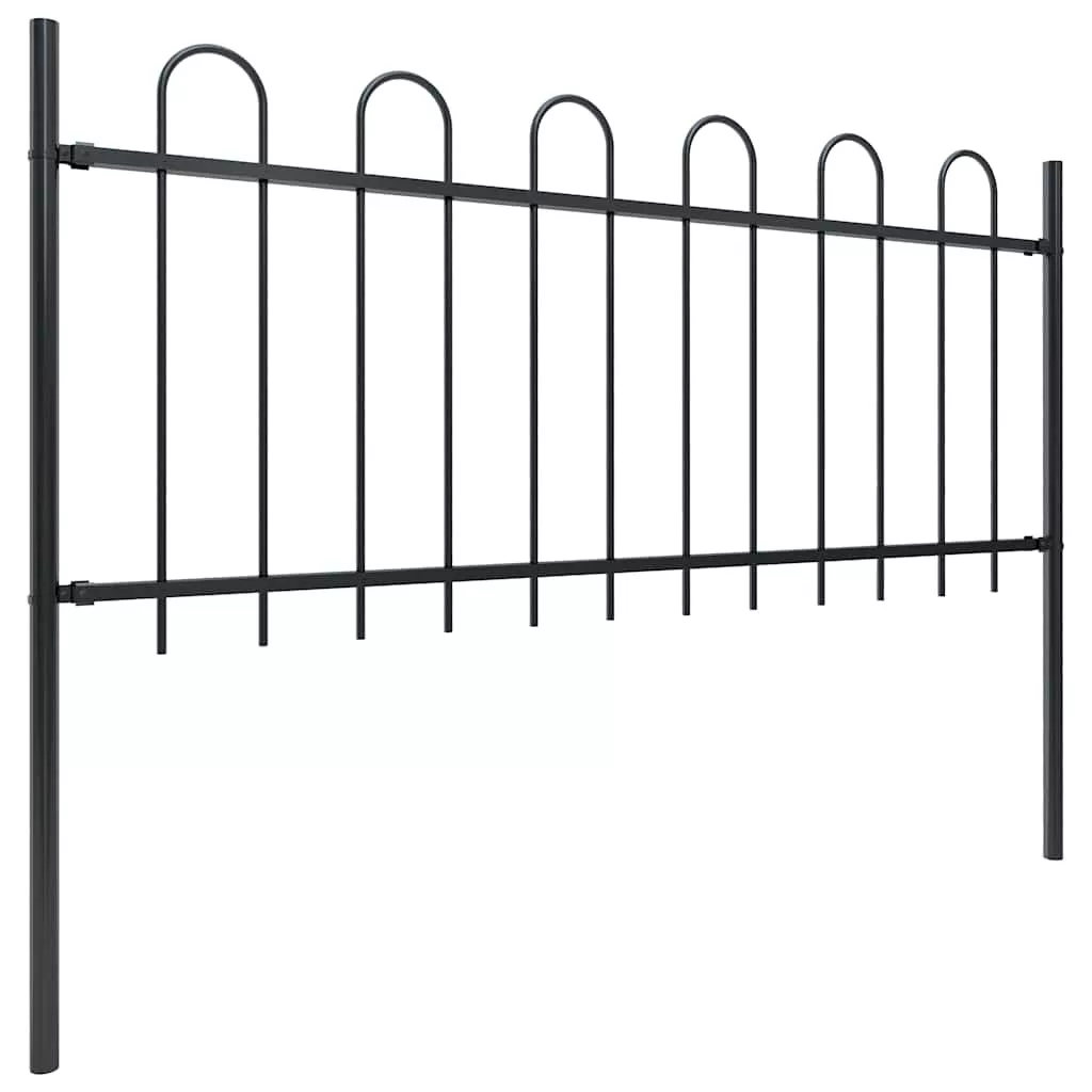 Határolja el kertjét, otthonát vagy sétálóösvényét ezzel az elegáns kerti kerítéssel! Ez a kiváló minőségű, hajlított tetejű, acél kerti kerítés összesen 1,8 méter hosszú, és kertjét, otthonát vagy kereskedelmi ingatlanát biztonságosan körülveszi. A függőleges elemek teteje hajlított, a vízszintes elemek viszont merevítésként szolgálnak a váz megerősítéséhez, így ez a kerítés magas fokú biztonságot nyújt. Nagy teherbírású, porszórt bevonatú acélból készült, így ez a kültéri kerítés erős és stabil, masszív és strapabíró. A mellékelt szerelési anyagokkal a kerti kerítés könnyen összeszerelhető. Megjegyzés: Több elemet is vehet, így a kerítés igény szerint meghosszabbítható.