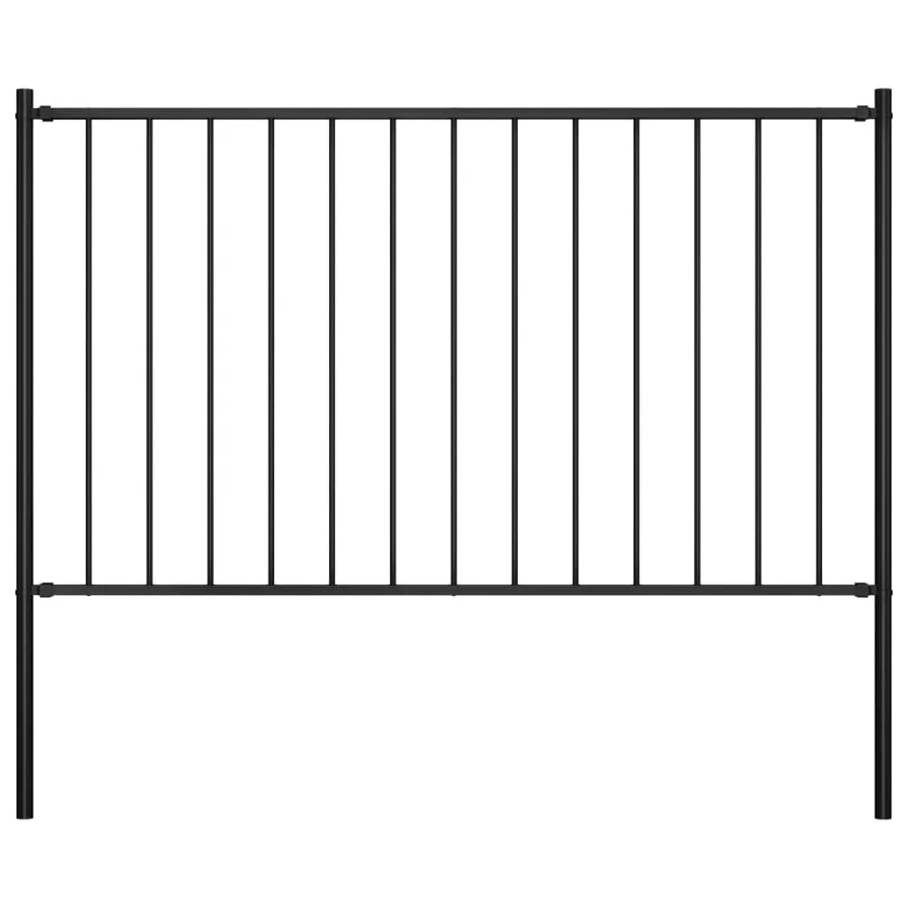 fekete porszórt acél kerítéspanel oszlopokkal 1,7 x 1,25 m