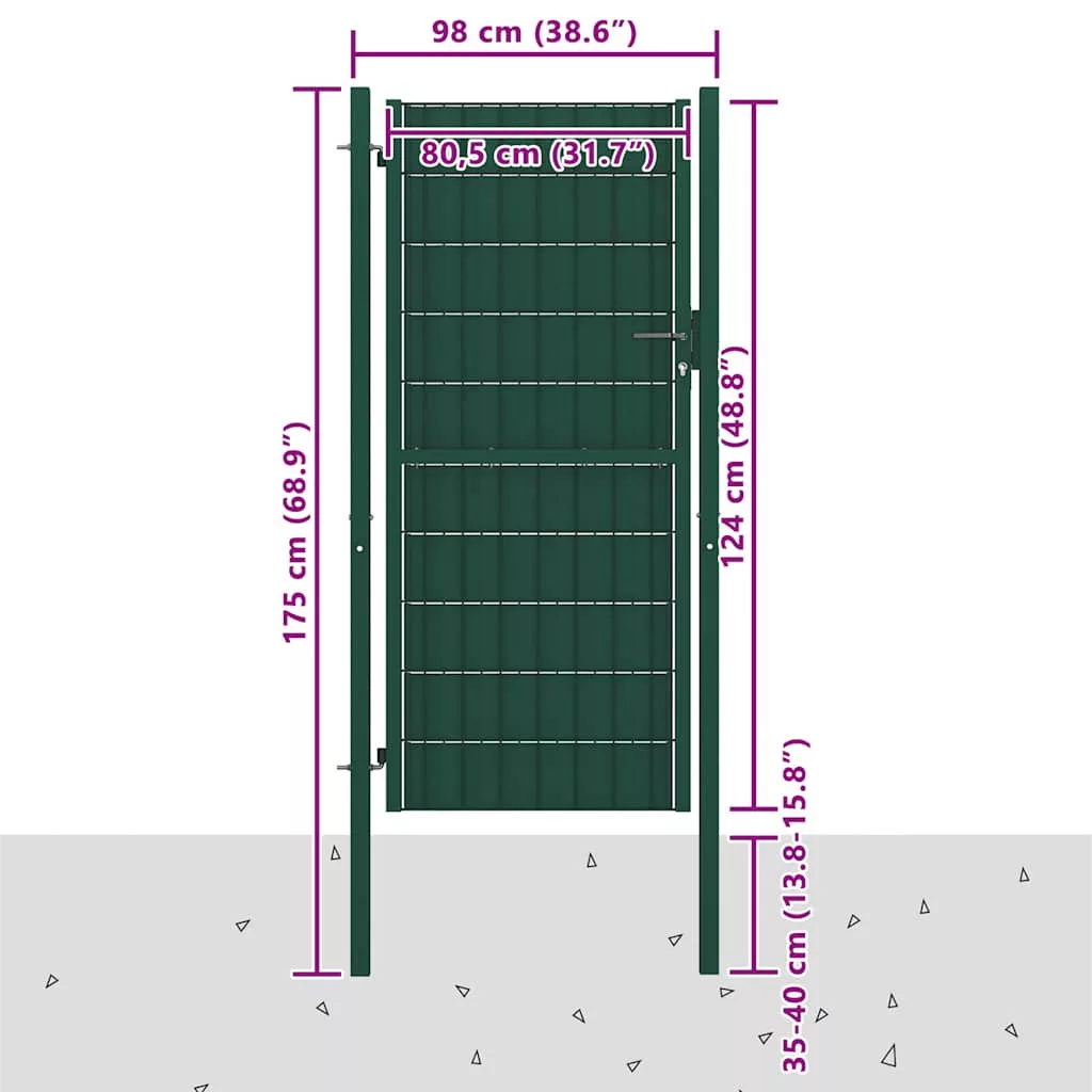 zöld PVC és acél kerítéskapu 100 x 124 cm