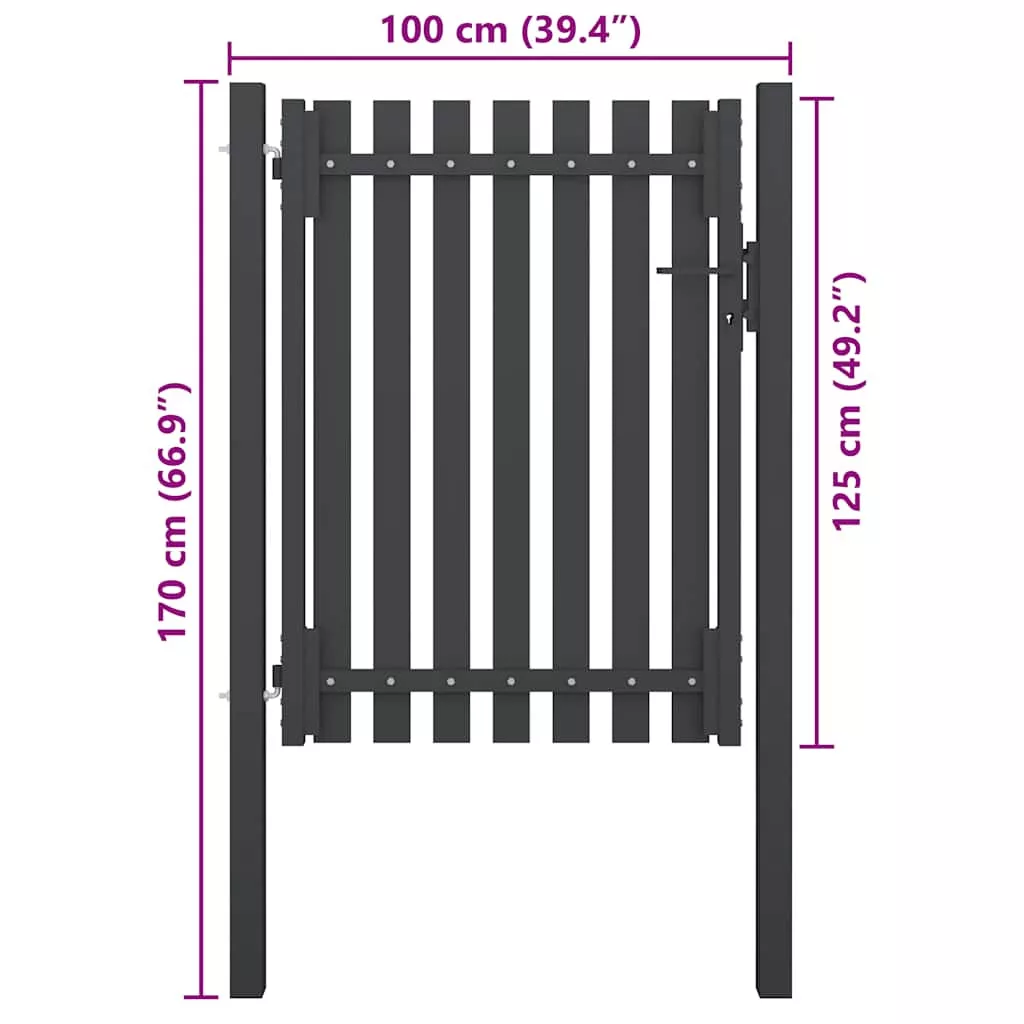 antracitszürke acél kerítéskapu 1 x 1,7 m