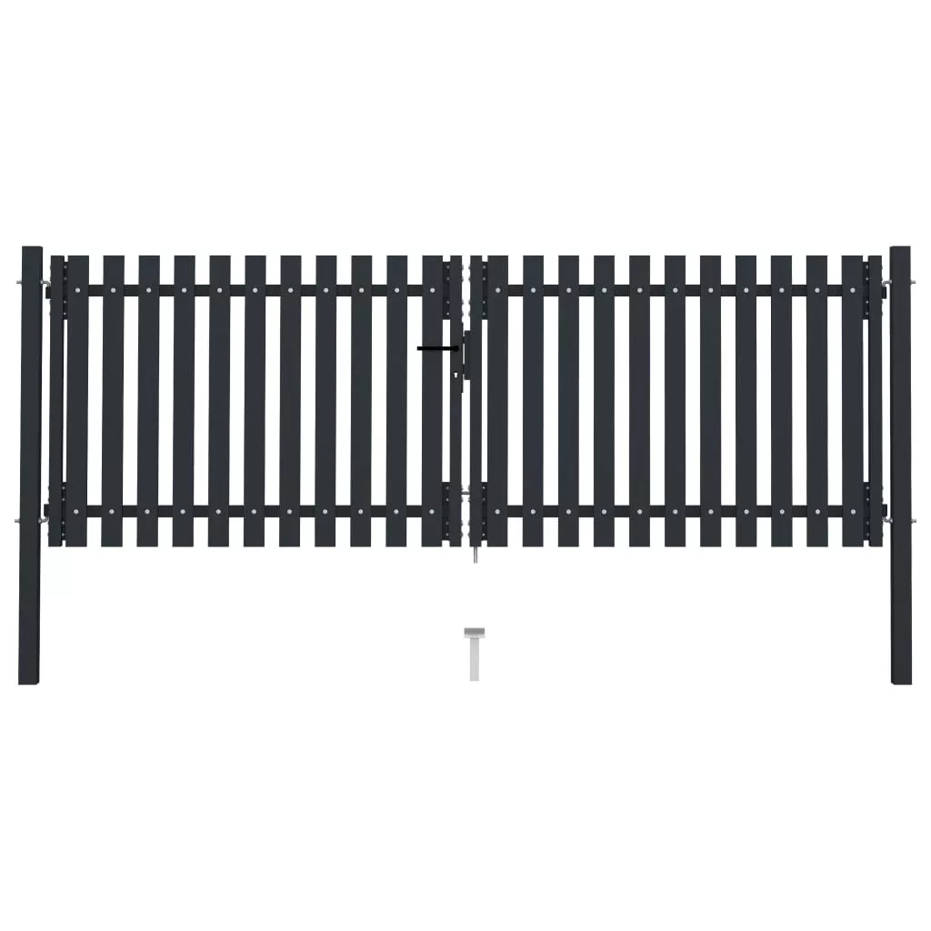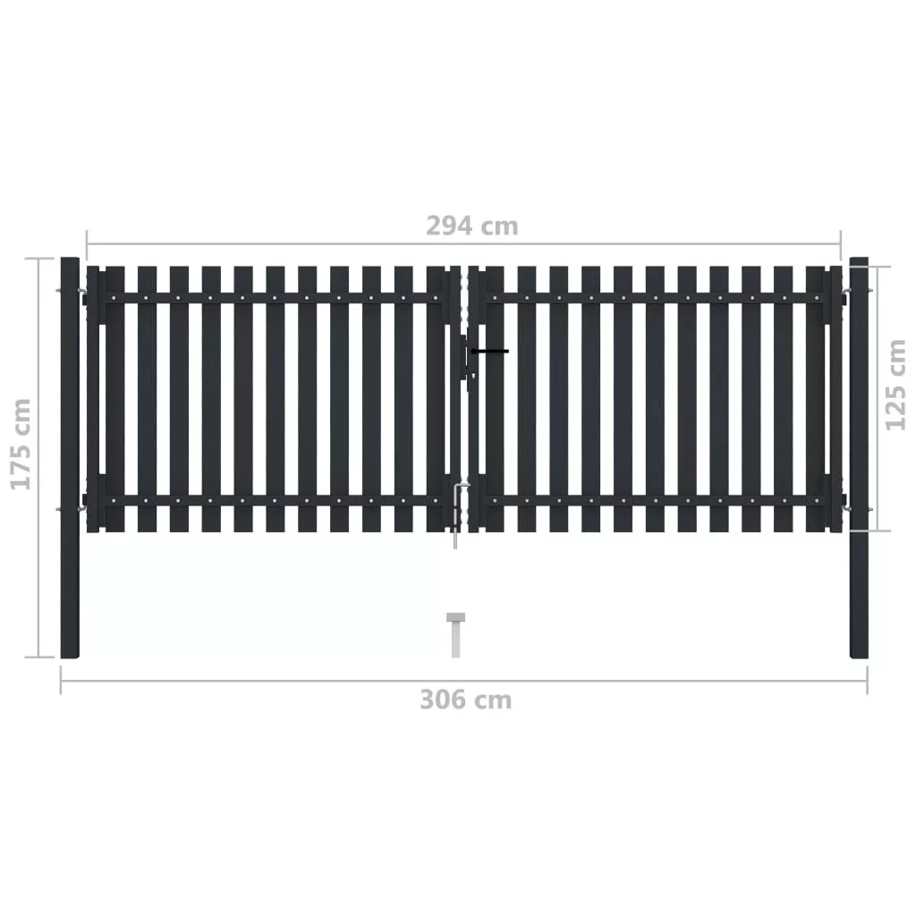 antracitszürke kétajtós acél kerítéskapu 306 x 175 cm