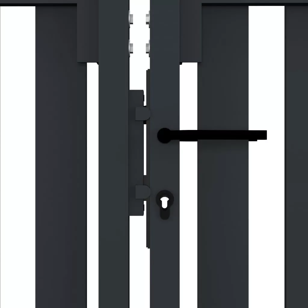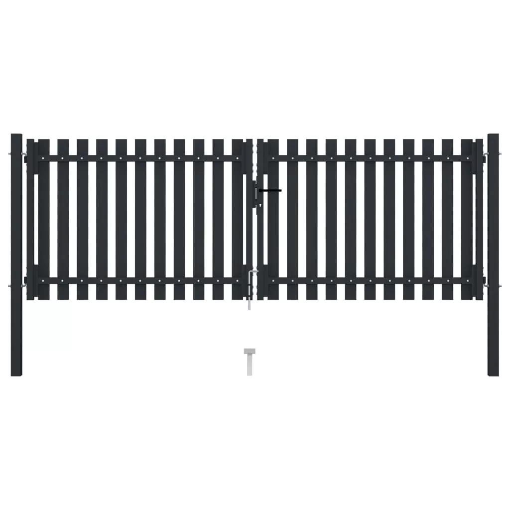 Ez a kétajtós kertkapu modern stílusú bejáratot kínál, amely elkülöníti kertjét a külvilágtól. A kapu porszórt bevonatú acélból készült, így rendkívül masszív. Ez a kerti kapu egy zárral, egy kilinccsel és egy földbe szúrható cövekkel lett ellátva, ezért nagyfokú biztonságot és kényelmet nyújt.