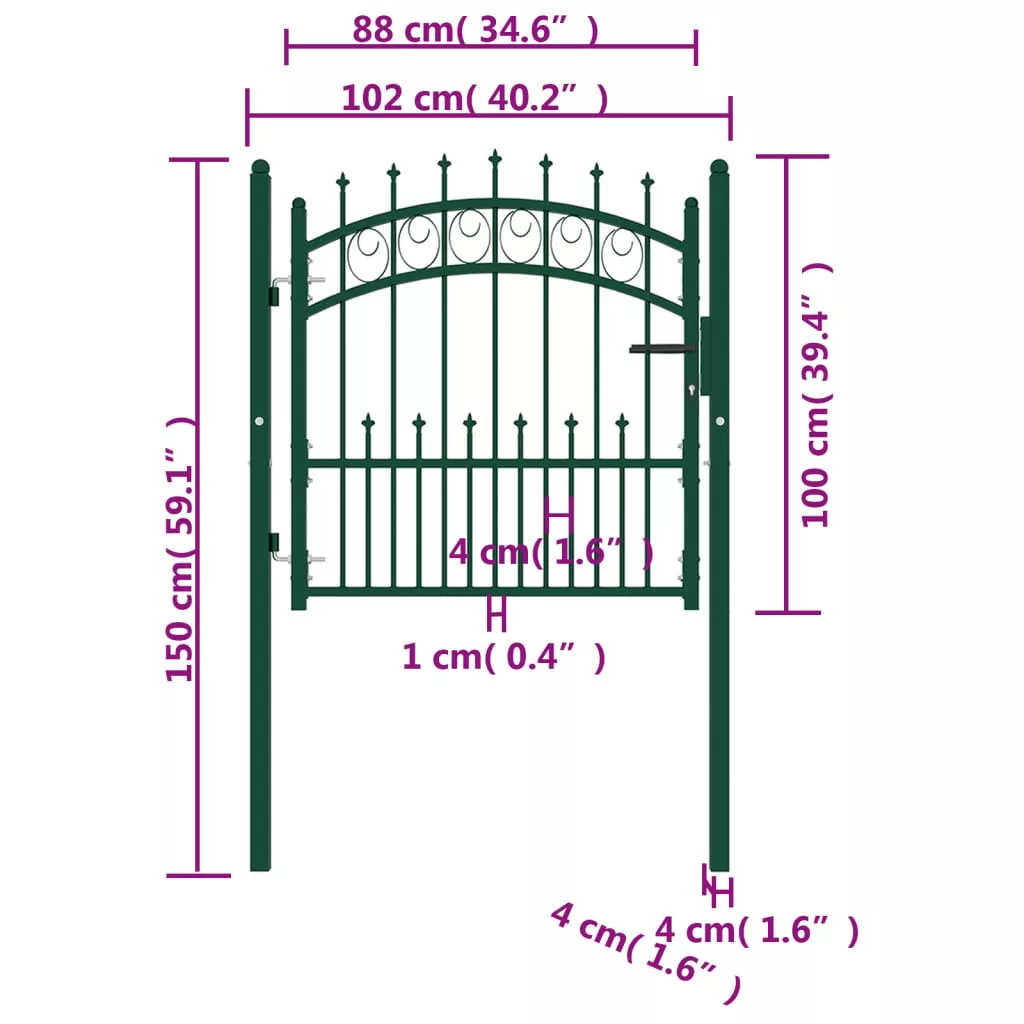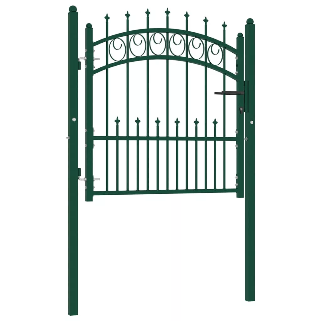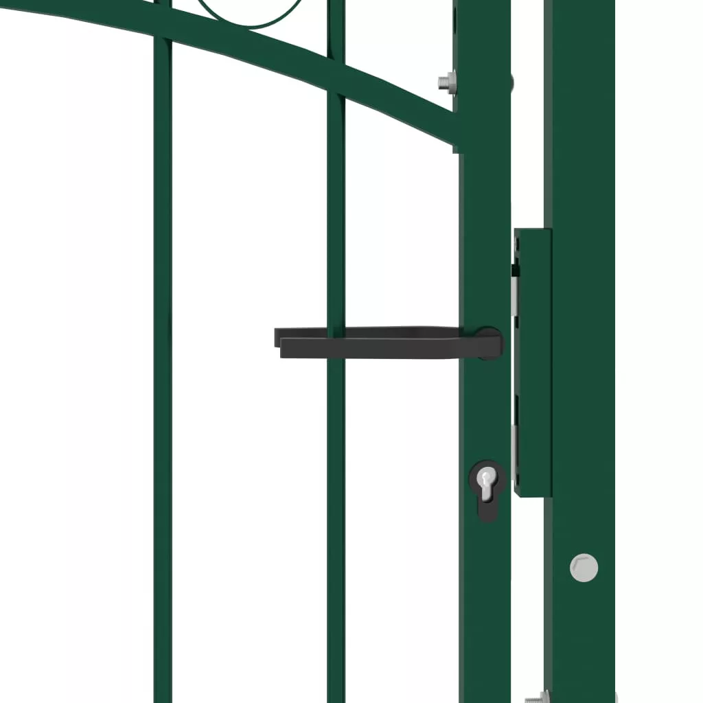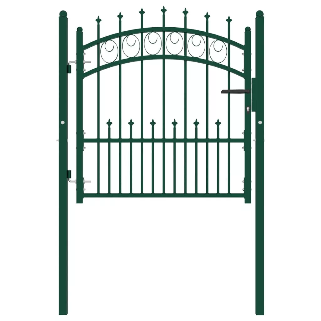 Ez a kerítéskapu praktikus biztonsági akadály lesz kertjében, verandáján vagy teraszán. A nagy teherbírású acélból készült kerítéskapu masszív felépítésű, porszórt bevonata pedig megvédi a rozsda és a korrózió ellen. A tüskékkel ellátott függőleges oszlopoknak és az erős vízszintes merevítőnek köszönhetően a kerti kapu magas fokú biztonságot nyújt. Az ívelt tetejű kialakítás növeli a kapu eleganciáját. Két szilárd oszloppal és masszív zsanérokkal rendelkezik az egyszerű telepítés érdekében. A szállítás zárrendszert és három hozzá való kulcsot is tartalmaz.